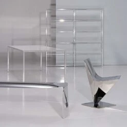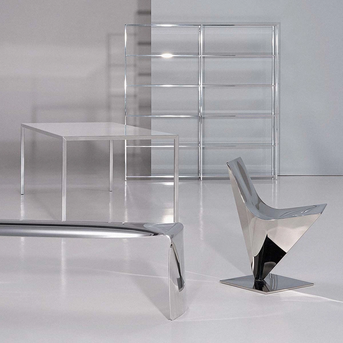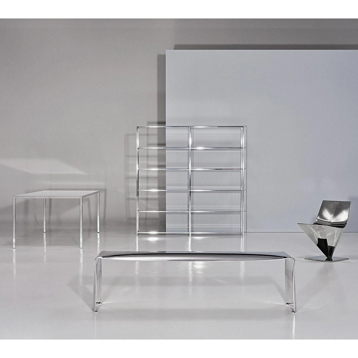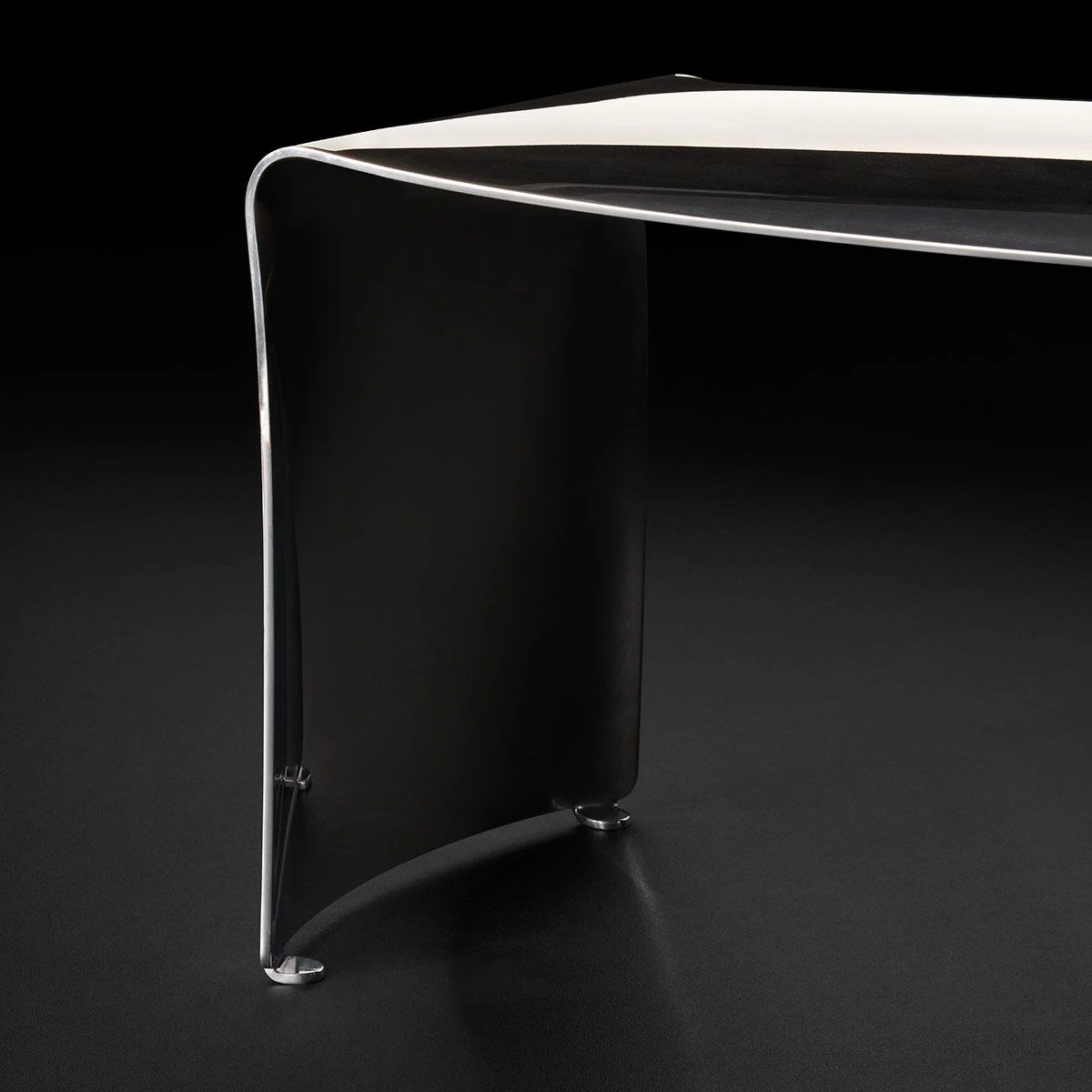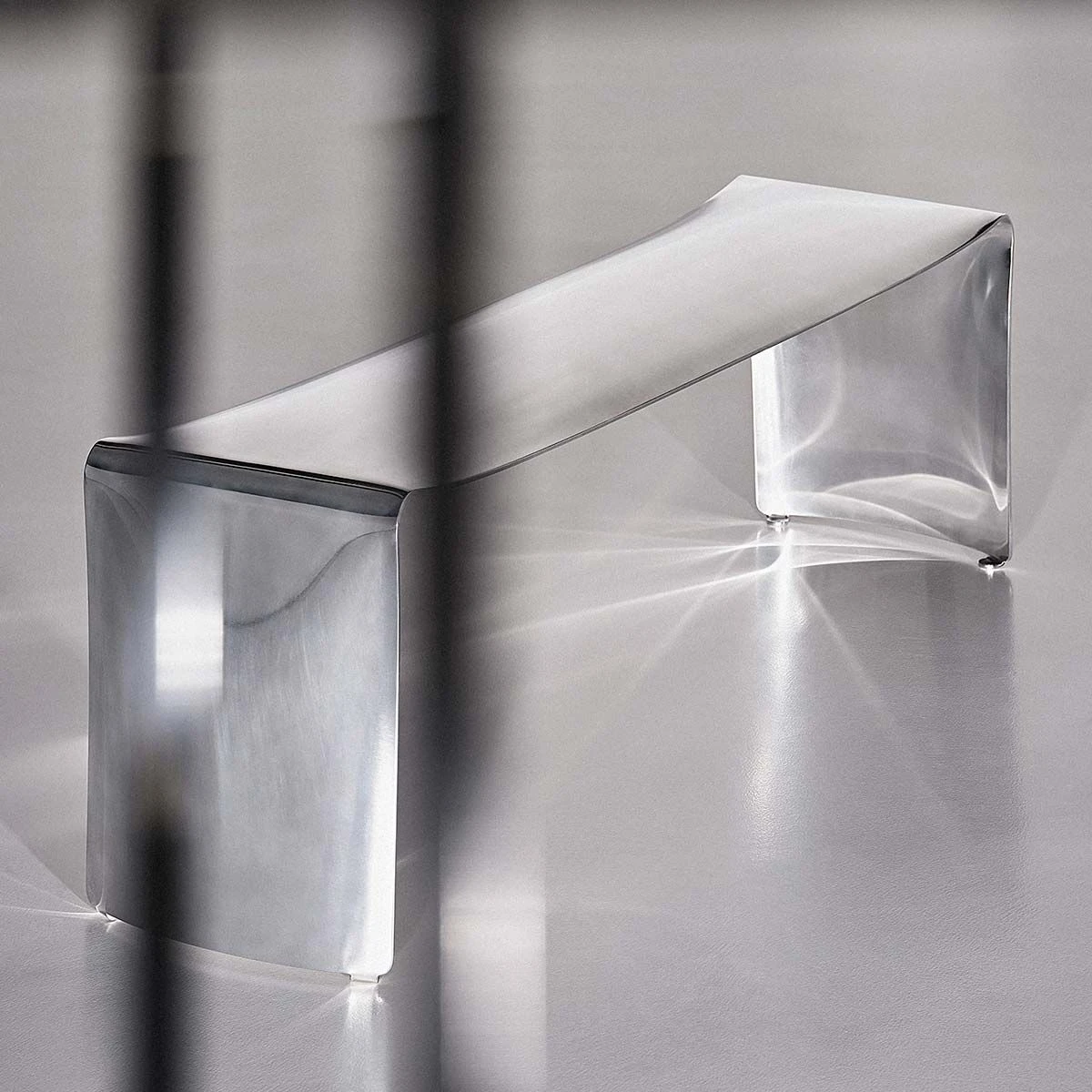 The aluminium finish, brushed and polished entirely by hand increases the perception of the material used in its purest form which reflects the light.