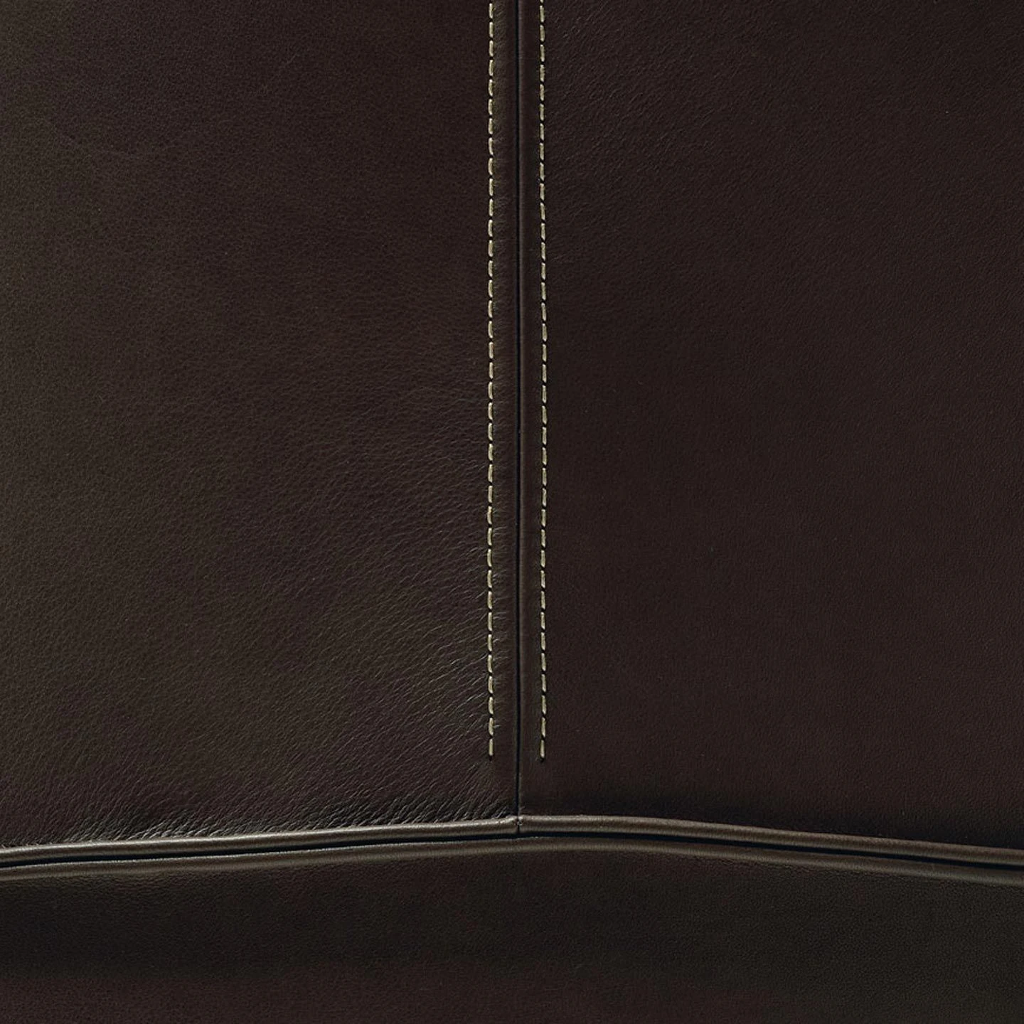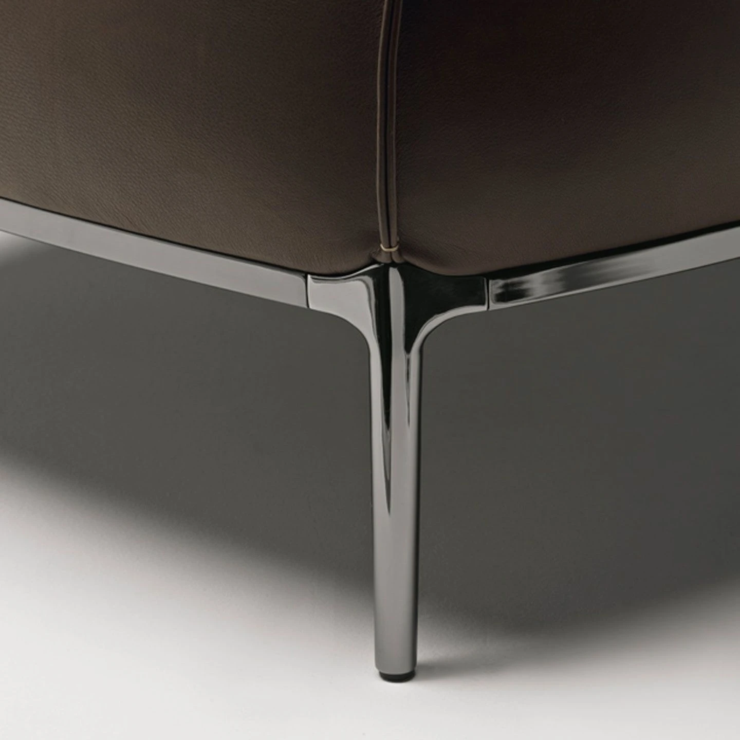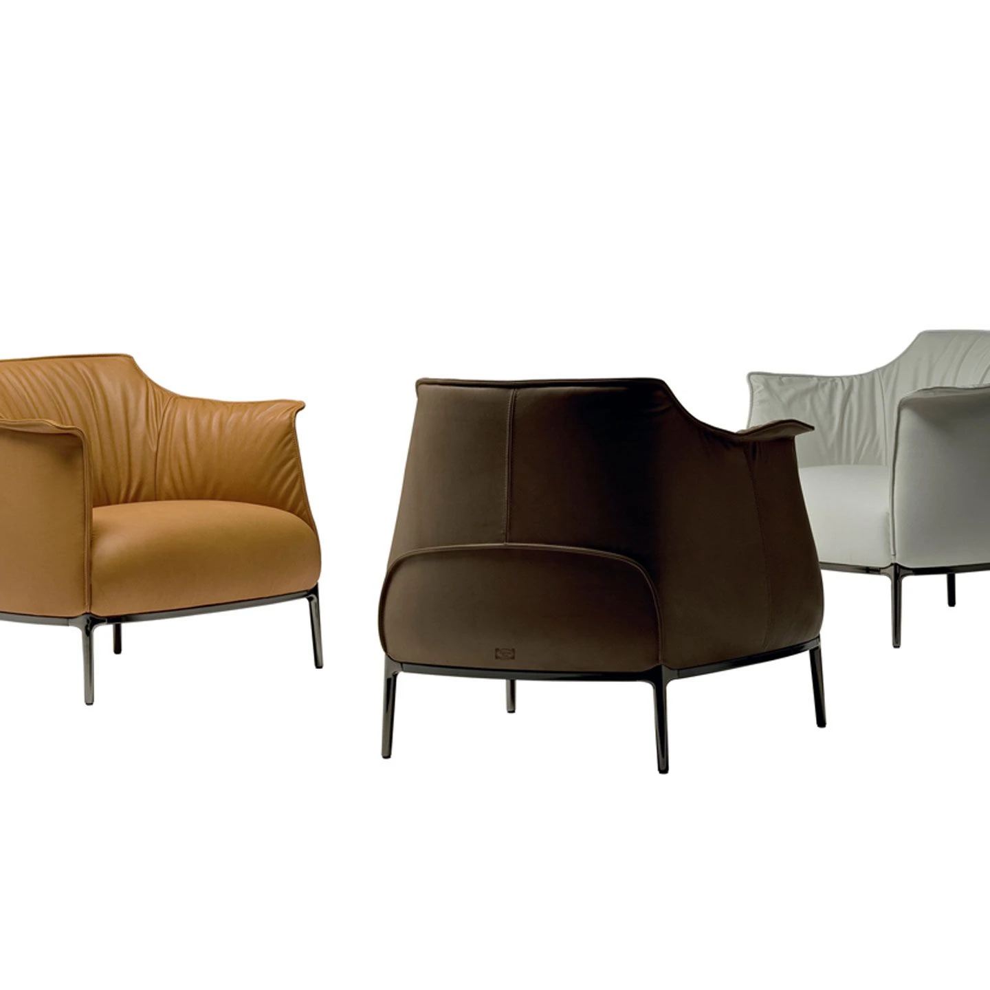 The enveloping design is exalted by the free play of folds that the leather creates across all of the internal part of the backrest, making it pleasantly undulating.The frame of the backrest and seat is made of steel with polyurethane padding, moulded, expanded and shaped with polyester wadding in the zones where more comfort is needed.
