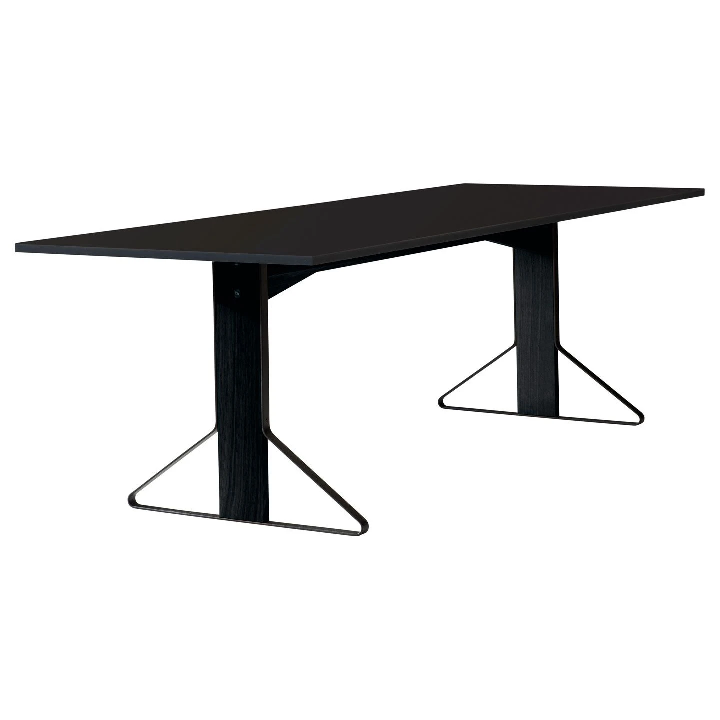 The Kaari Collection is the first collaboration between the Bouroullec brothers and Finnish design powerhouse, Artek – a family of pieces that express a practicality projected through the functionality of the work surfaces and the structural components that comprise it. A long dining table with a choice of top finishes on a natural or black oak frame with black painted steel arch-like (‘Kaari’ in Finnish) supports. A smaller (2m) table is also available.