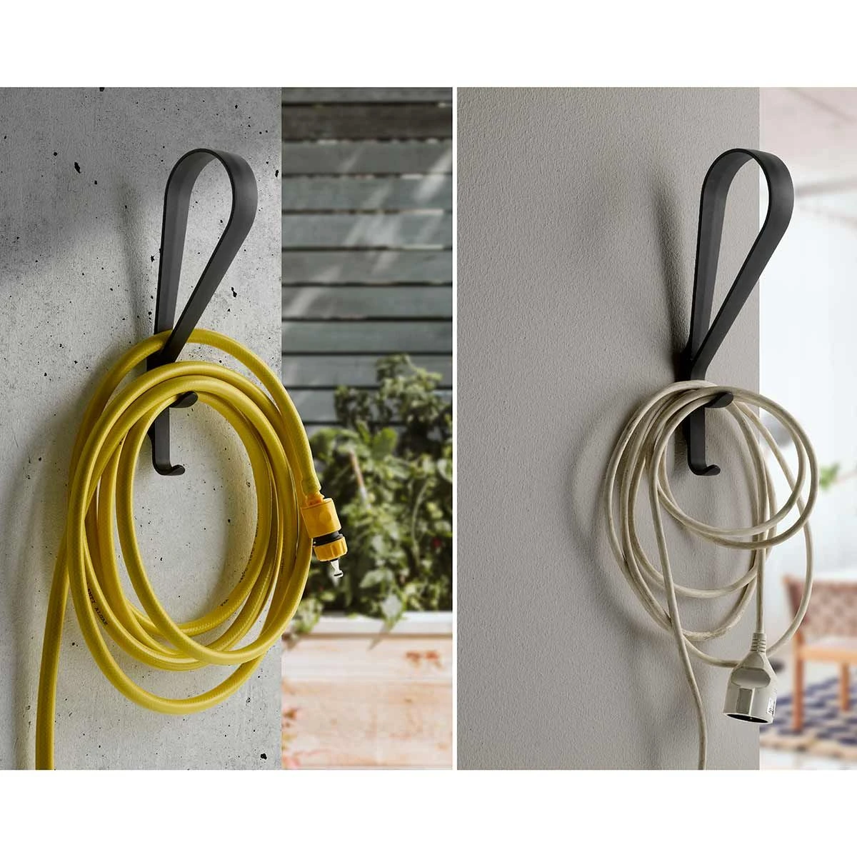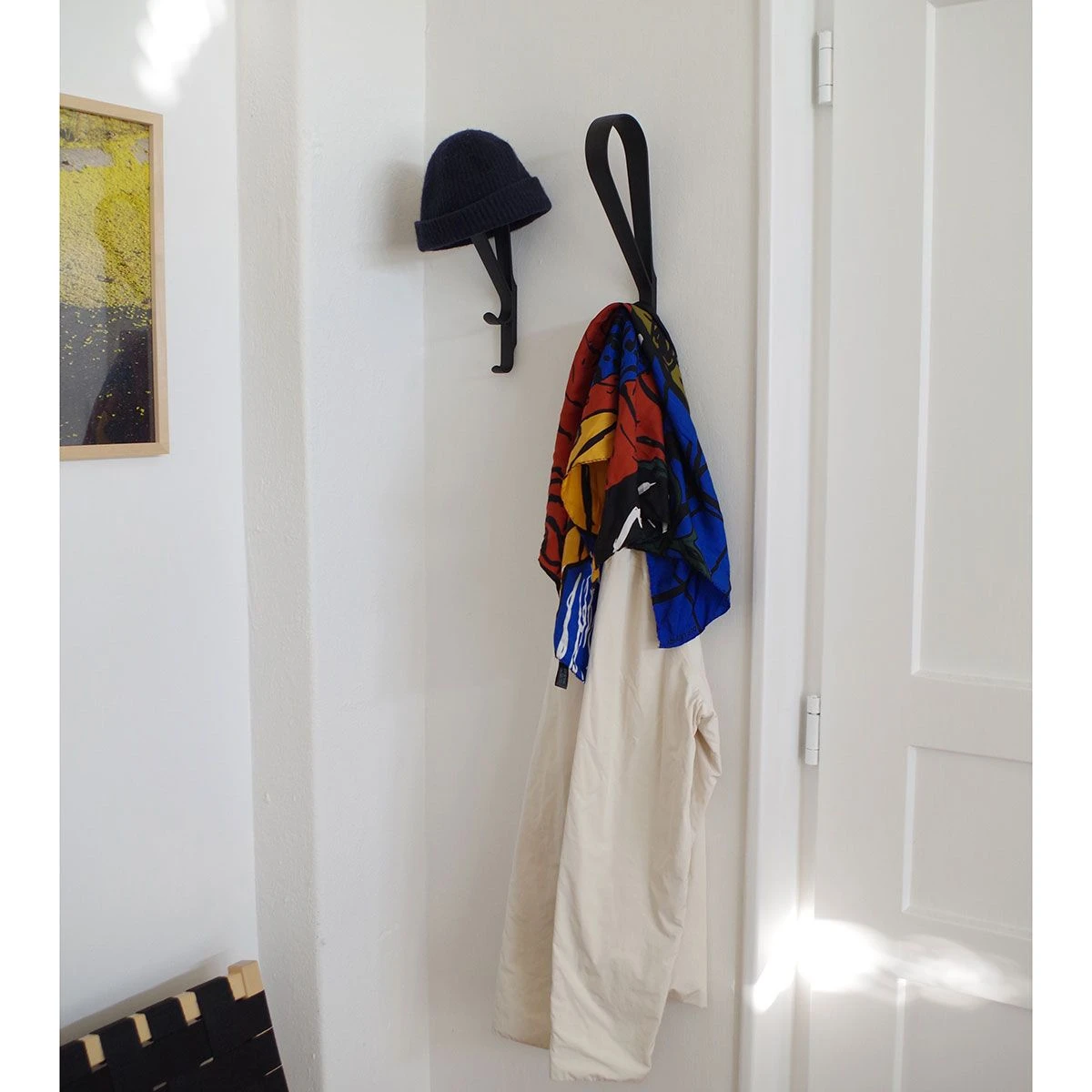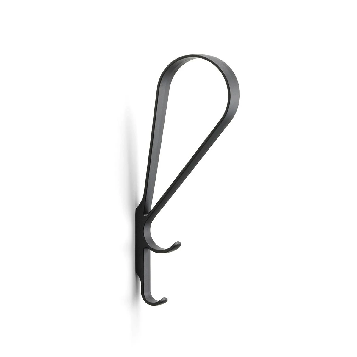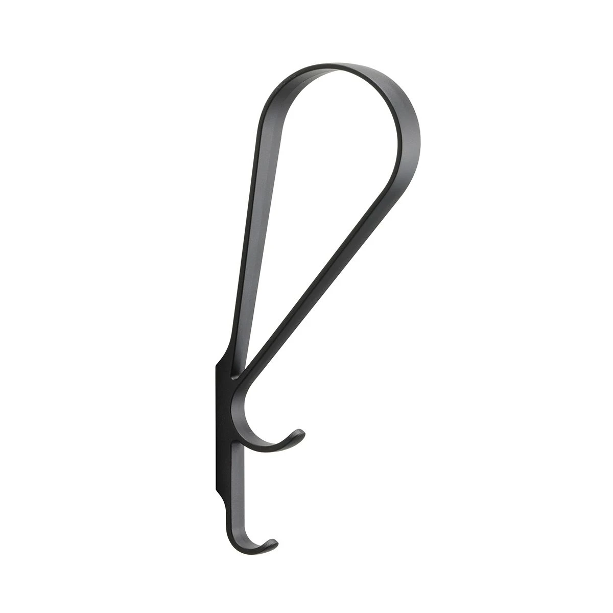 Tupla Wall Hook by Ronan & Erwan Bouroullec for Artek. Designed in 2020 Tupla is a simple yet functional storage tool for hanging objects on the wall although with its beautiful aesthetic it doubles as a decorative piece when not in use. Tupla means โdoubleโ in Finnish which refers to the two hooks that Tupla offers. Made from die-cast zinc in a black powder coated black finish. Please contact the store for more information.