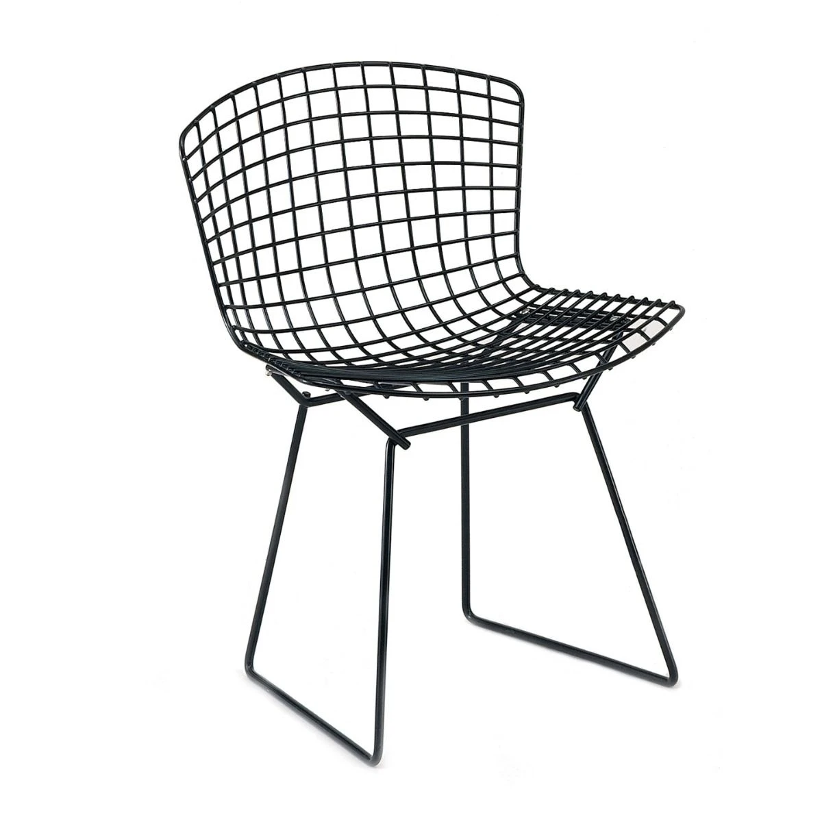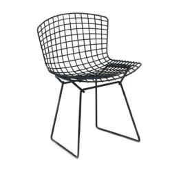 Innovative, comfortable and strikingly handsome, the delicate filigree appearance of Harry Bertoia’s side chair belies its strength and durability. This version is sold without a seat pad – please see below products for seat pad options – in a ‘Rilsan’ coated finish in black or white which is suitable for outdoor use. A version in chrome including a seat pad is also available. Quickship: Chrome – 3 weeks