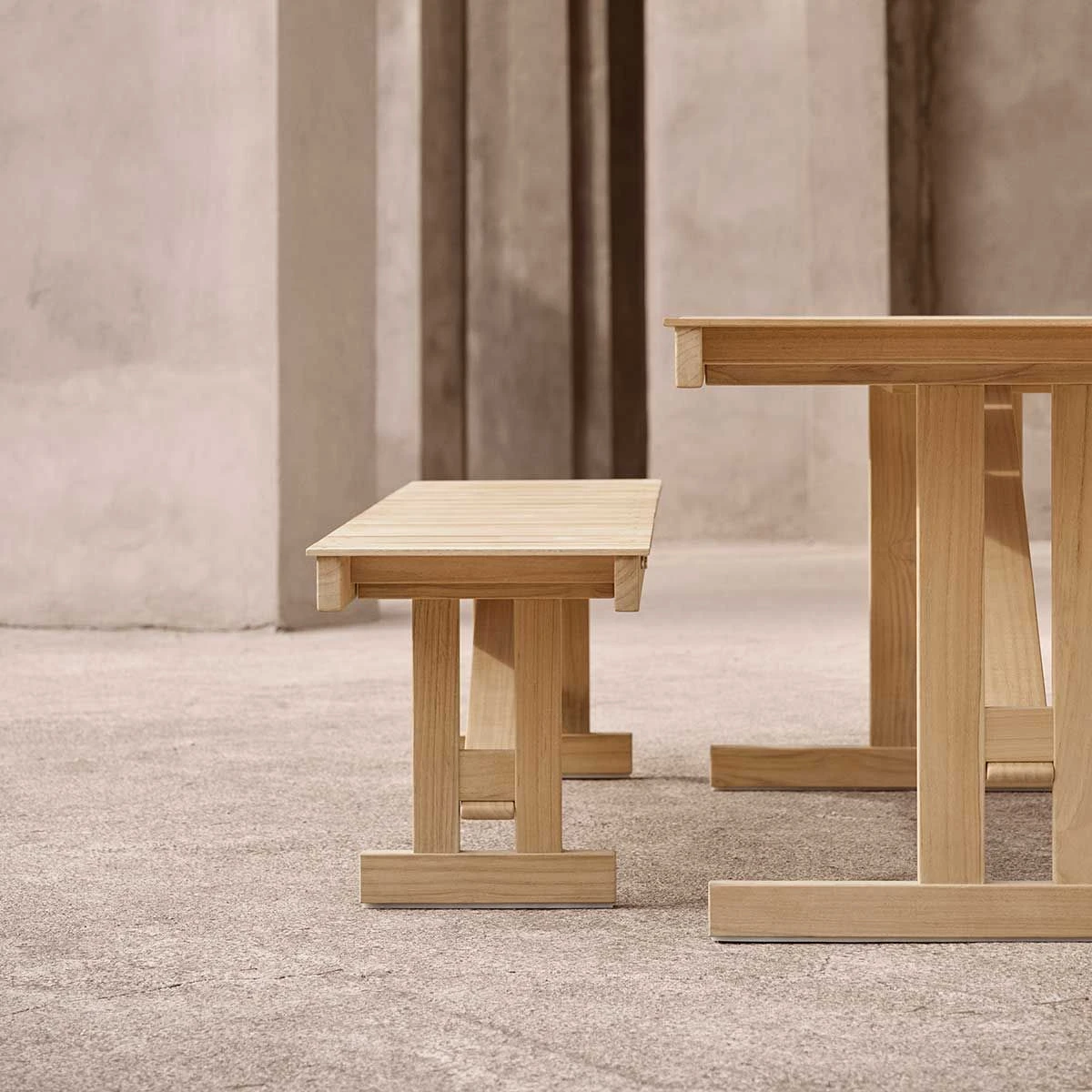The BM1871 Outdoor Bench is expertly crafted in untreated FSC™-certified teak for durability. The bench is set on sturdy legs that tuck neatly inside the elegant slatted seat for easy storage when not in use. Removable padded cushion in weather resistant Heritage Papyrus fabric is also available.