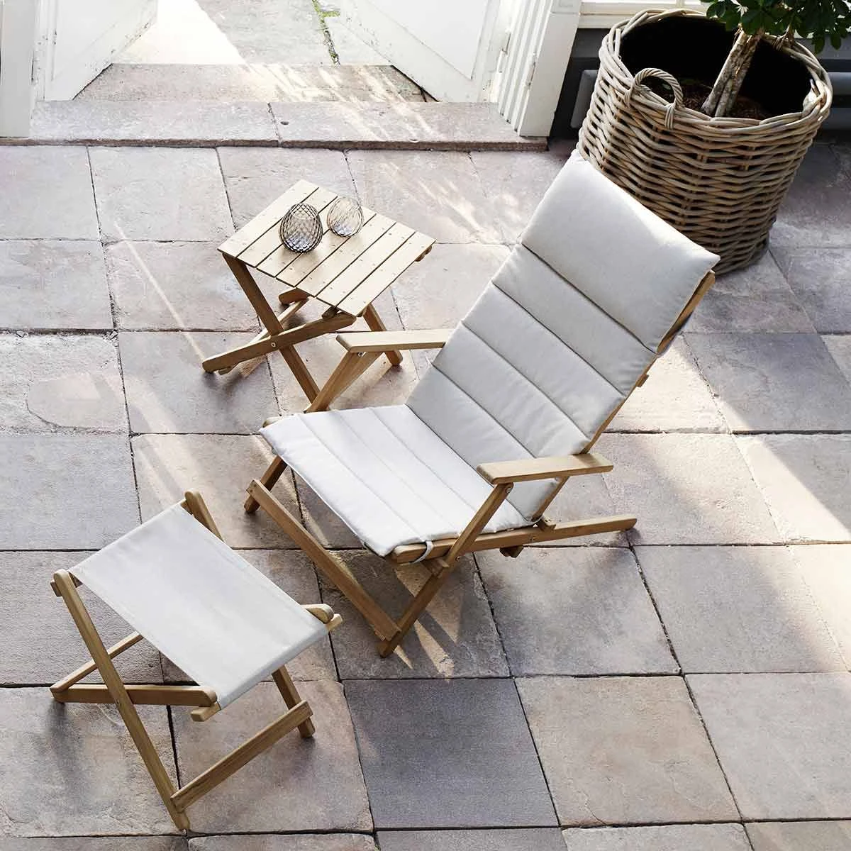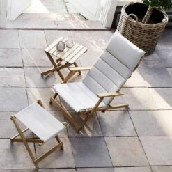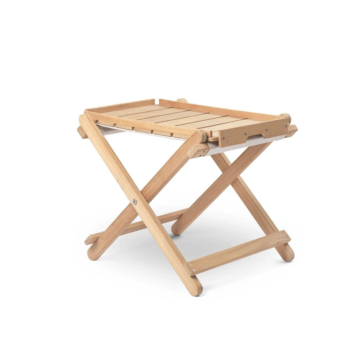 The BM5768 Footstool was designed in the late 1960s by Danish furniture designer Børge Mogensen as part of the Deck Chair Series of beautifully crafted outdoor furniture in solid, untreated, FSC-certified teak. Perfectly proportioned to match the height of the BM5568 deck chair, the suspended seat of the foldable BM5768 Footstool is upholstered in weatherproof fabric, chosen for its natural look and easy cleaning. Can ideally be paired with BM1069 tray in solid Teak to create an inviting outdoor table.