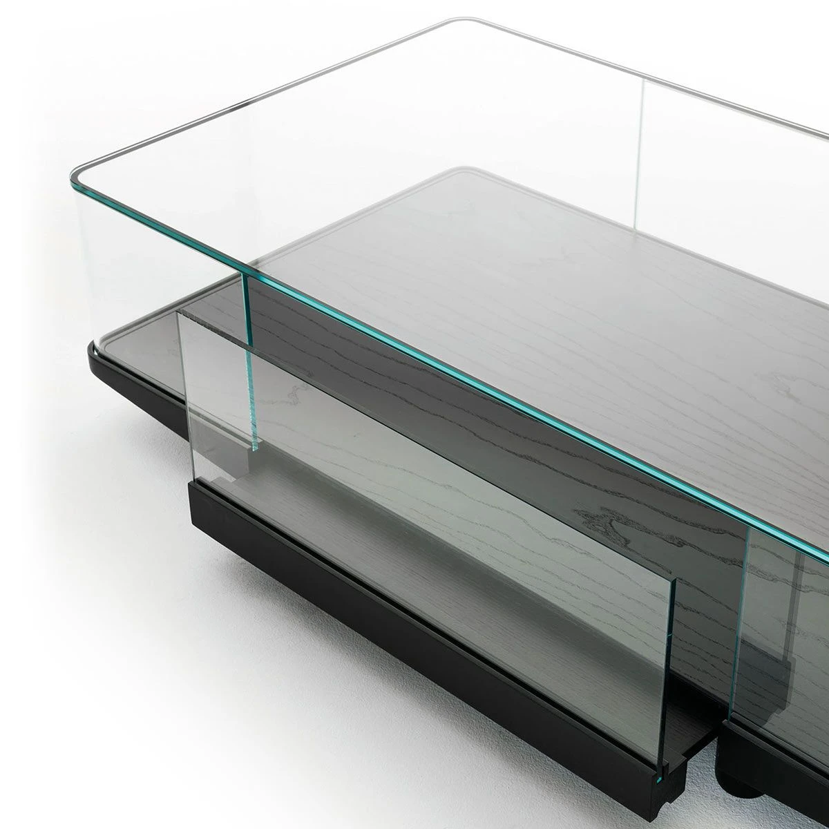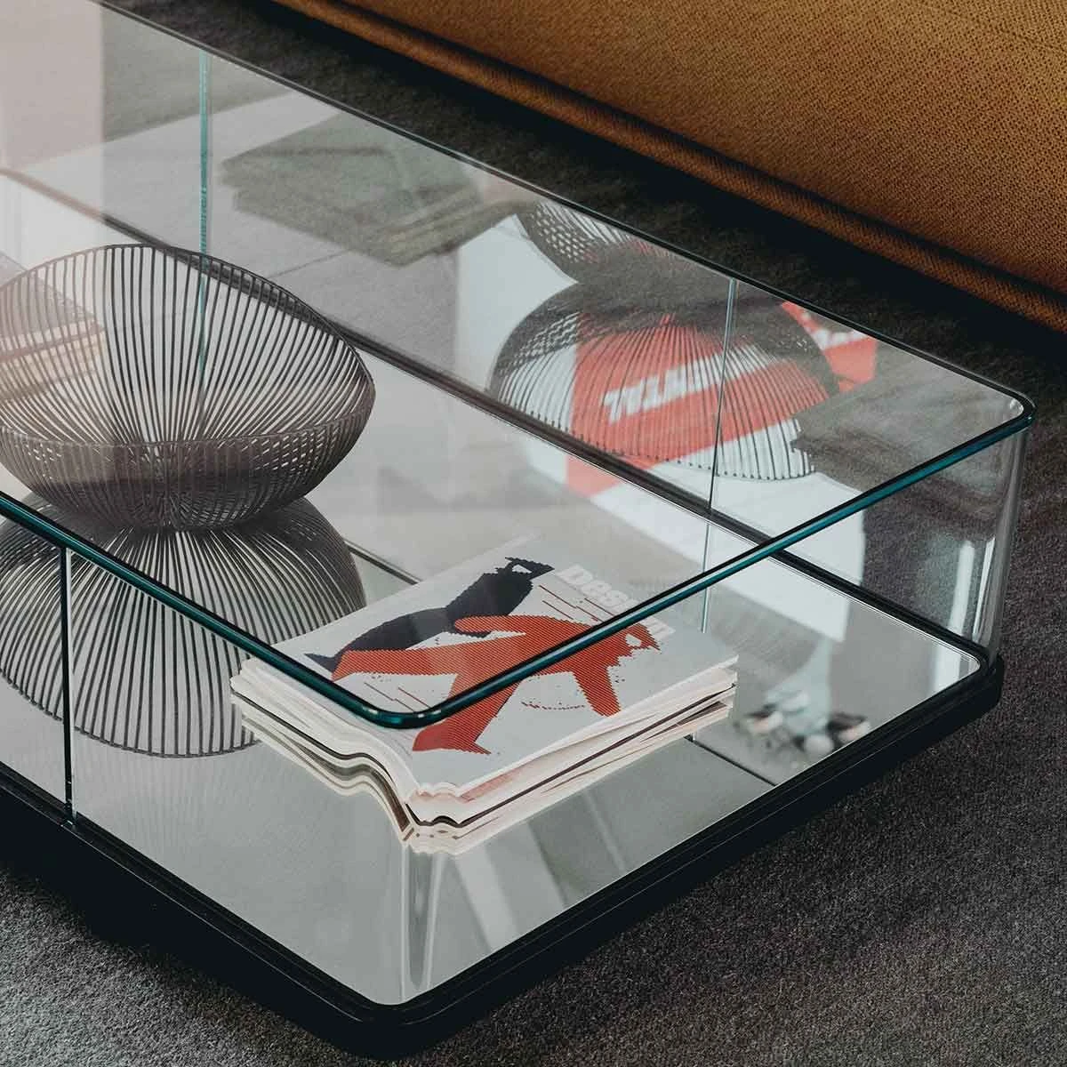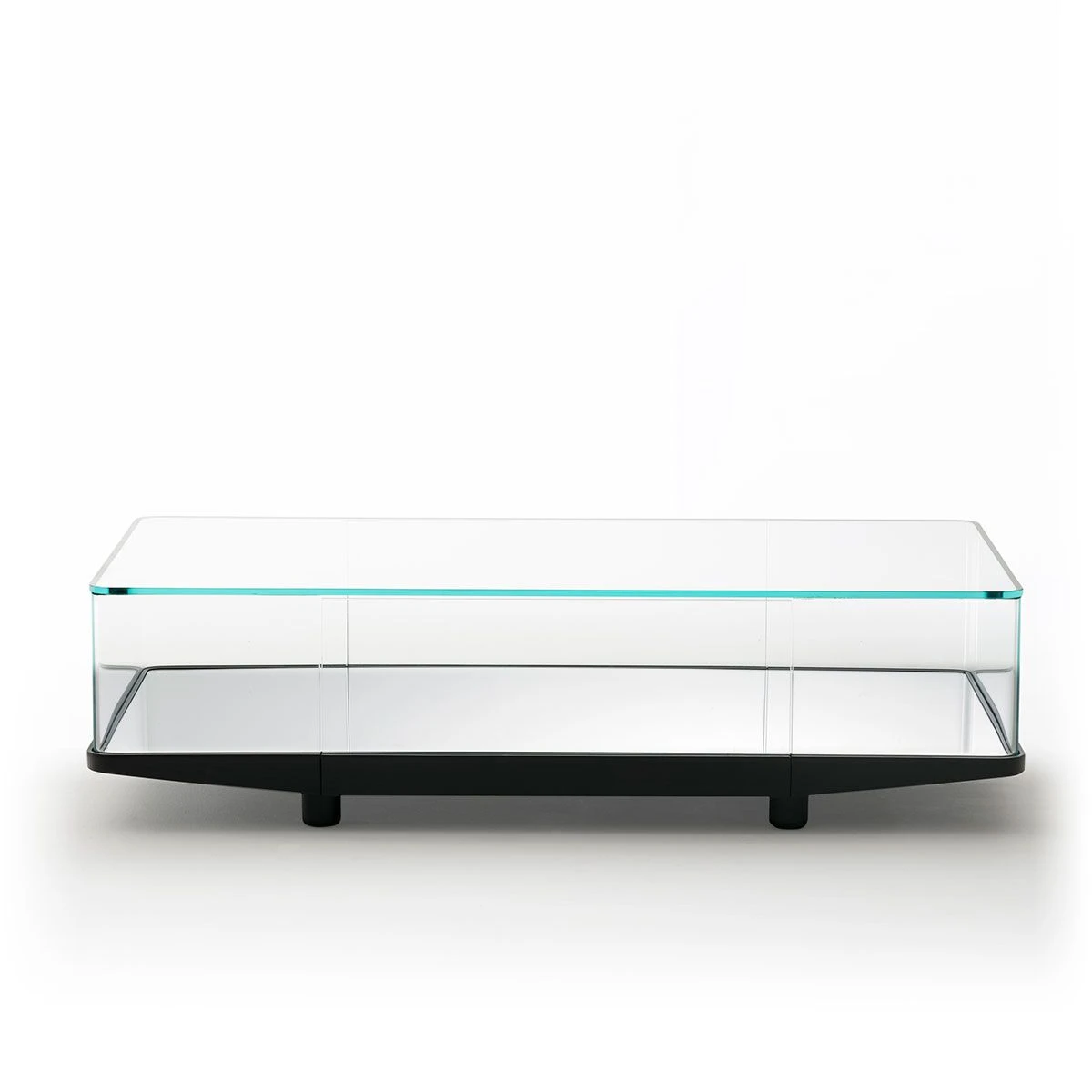 The Collector Coffee Table is part of a series designed for Glas Italia by Barber & Osgerby. Perfectly suited to displaying objet d’art, monographs or family heirlooms, Collector is available with either a black lacquered ash base or a flush-fitted mirror base. Extralight glass with a curved profile. Also available in square or as display cases in four sizes – contact the store for more info on these.
