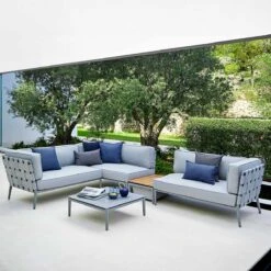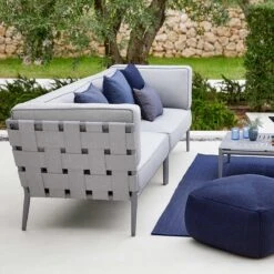 The Conic 2 seat module sofa can be used in many different ways, both if it is used as a solitaire piece of garden furniture or as a part of a bigger Conic modular lounge group Conic represents a highly relaxed and luxurious style that will enhance exterior areas with a timeless and contemporary atmosphere. The 2 seater Conic module comes with all-weather cushions, that allows the cushions to drain after a rain shower and thereby maximizing the time one can enjoy the furniture. Available from stock in Denmark. Cushions come with QuickDry foam, which provides maximum drainage and air circulation allowing the cushions to dry faster after being exposed to rain or dew. QuickDry foam also has antibacterial protection preventing fungus and mold growth inside the cushion.
