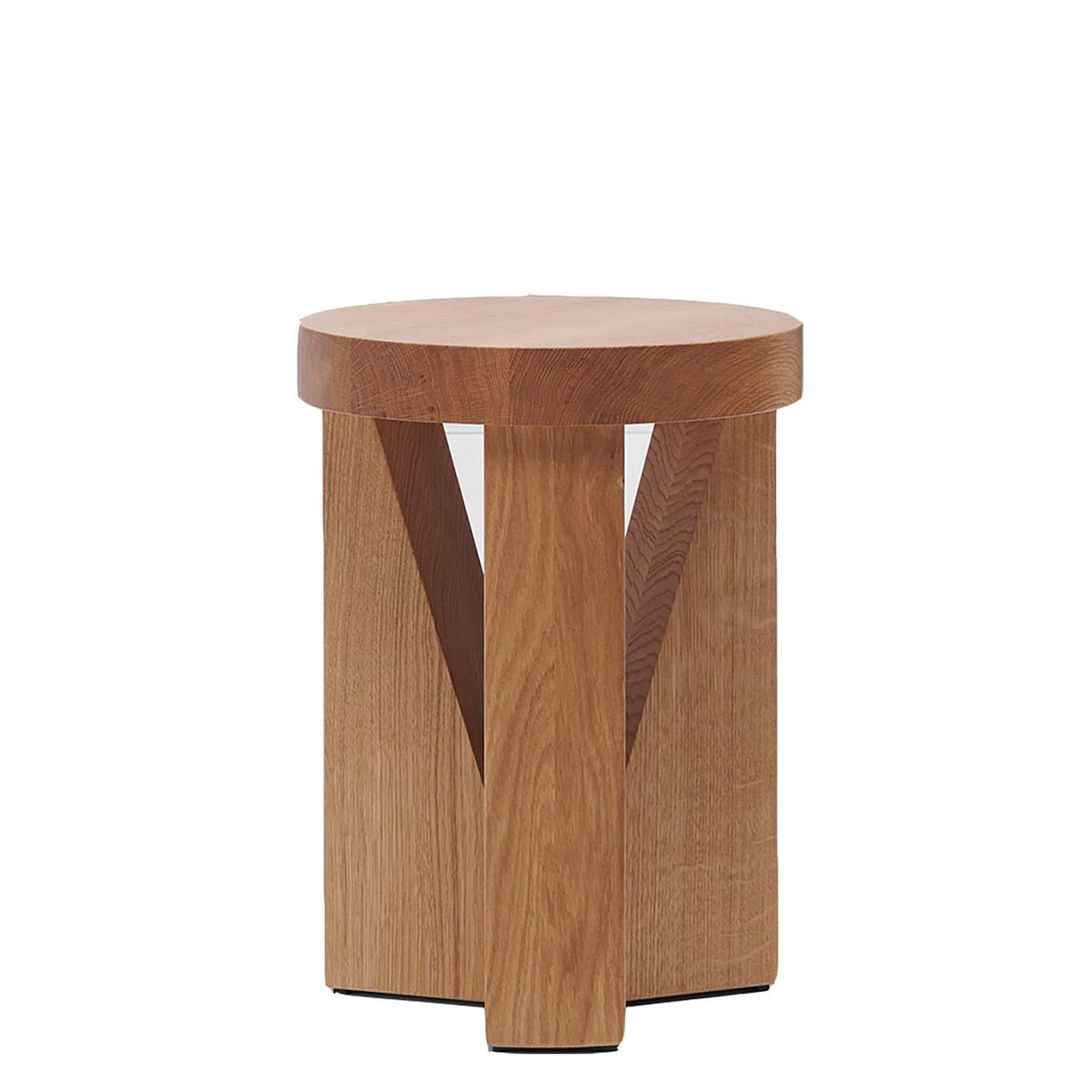 Cugino Stool Side Table by Konstantin Grcic for Mattiazzi. Cugino is a wooden object made from European Oak that can be used as a stool and/or a side table. Showcasing expert craftmanship and beautiful finishing, Cugino was desigend without a pre-determined outcome but instead offering Cugino to offer it’s usefulness over time. Can be easily transported to suit the users needs as a stool or side table. A solid structure with complex joinery. Also available in black painted oak, please contact the store for more information.