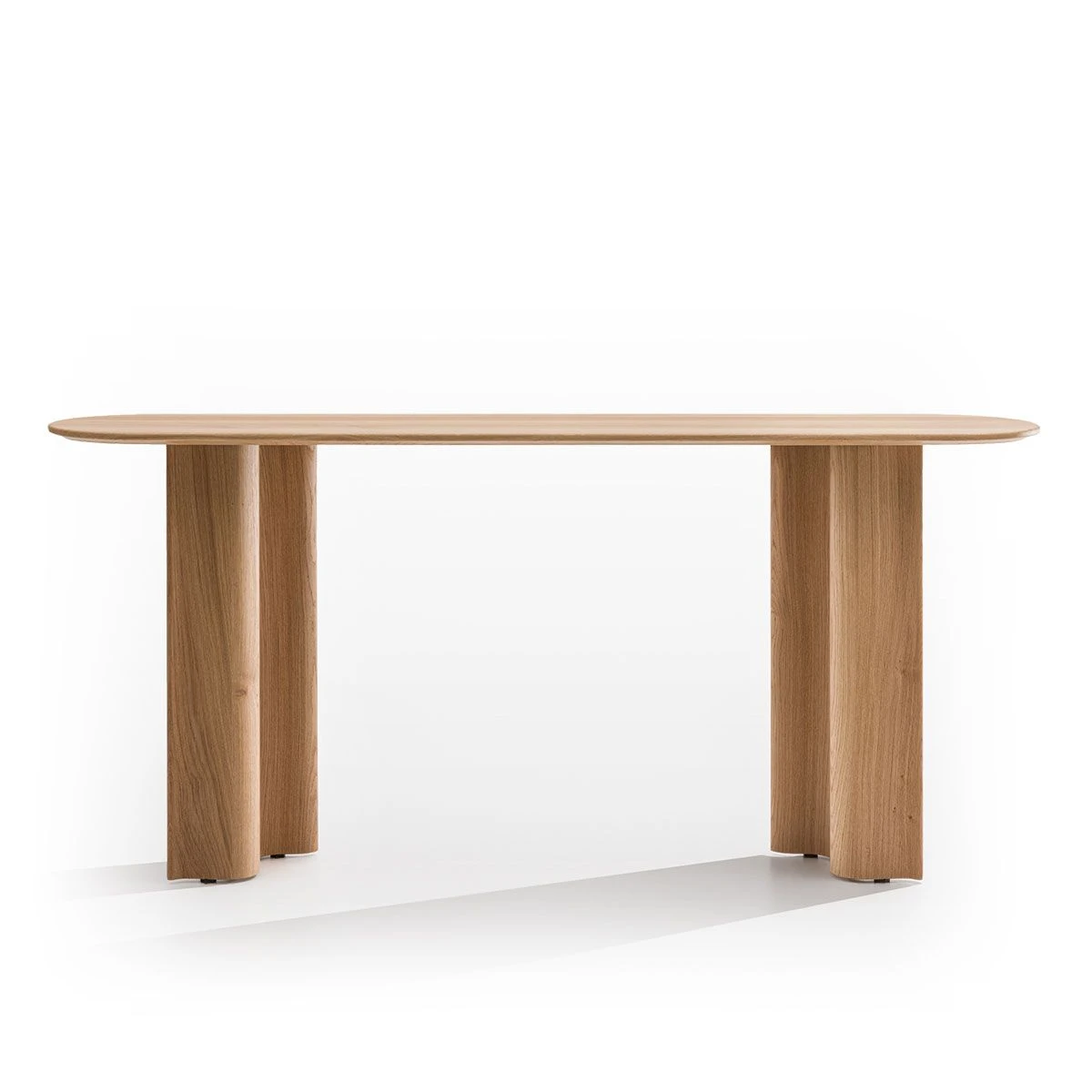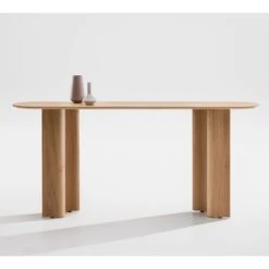 The Curtain console table is a new addition to the Curtain collection from Zeitraum designed by Läufer & Keichel. Launched in 2023, the Curtain console is an elegant and sculptural form that contrasts the flowing wave-like legs with the rigidity of the solid wood top. Available with the option of rectangular or semicircular ends, in a wide range of woods.