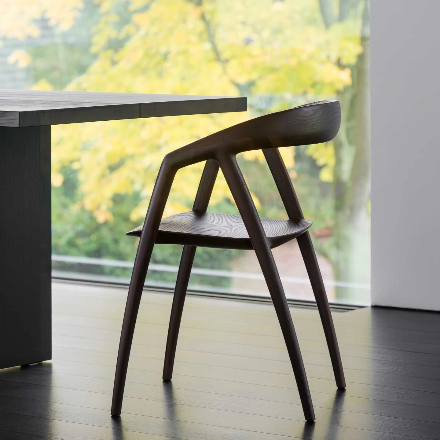 DC09 dining chair by Kyoko Inoda and Nils Sveje for Miyazaki Chair Factory. Launched in 2011 the entire structure of the DC09 chair is solid walnut. The ergonomic quality and organic lines result in a beautiful looking piece. Other woods and finishes are available – please contact the store for more info.