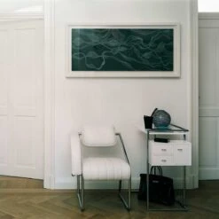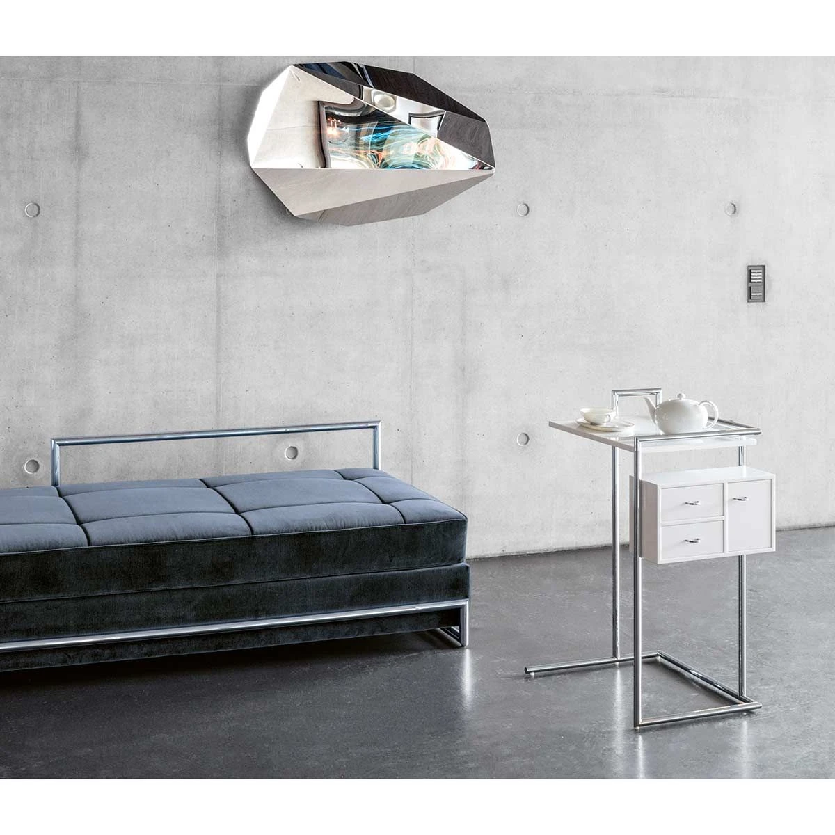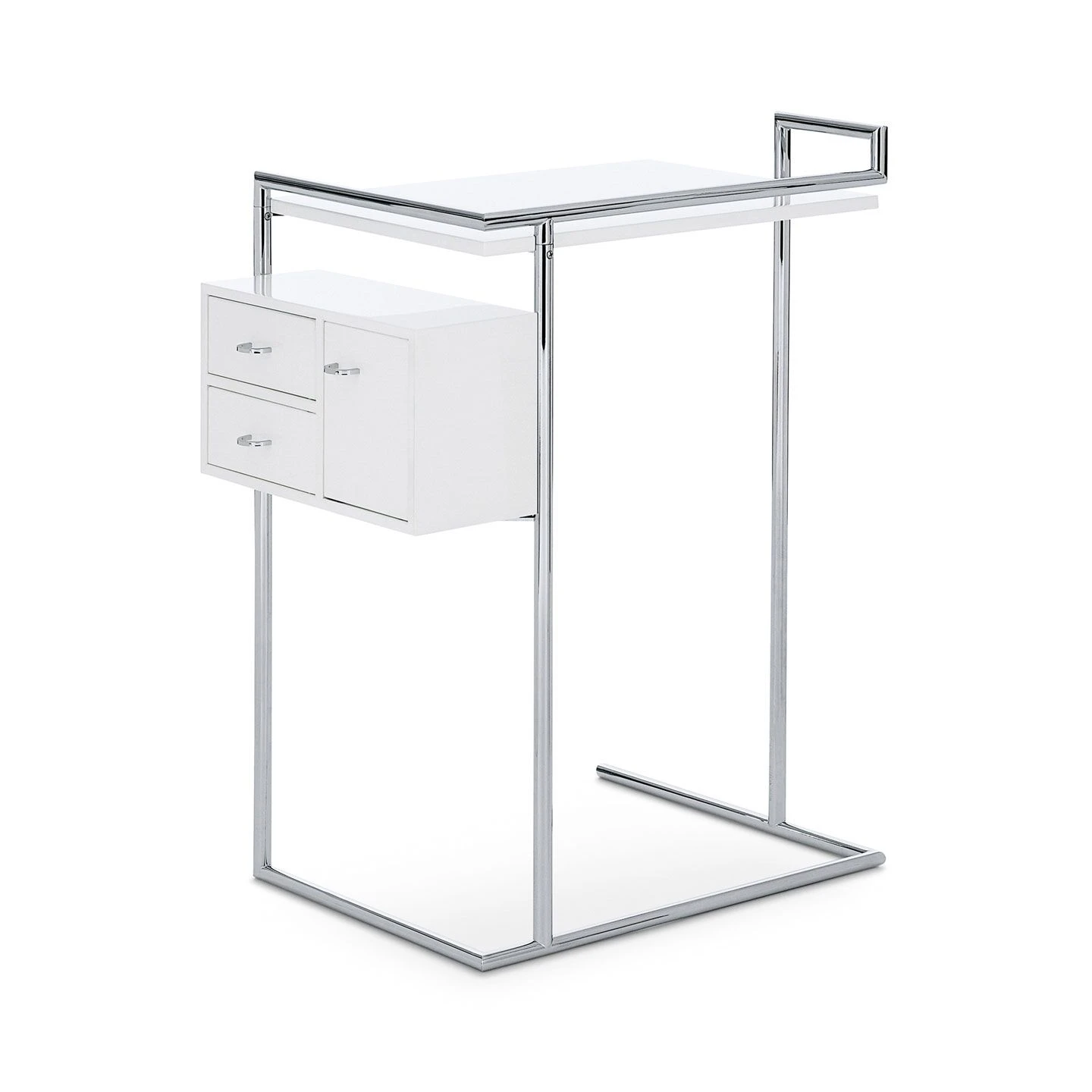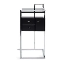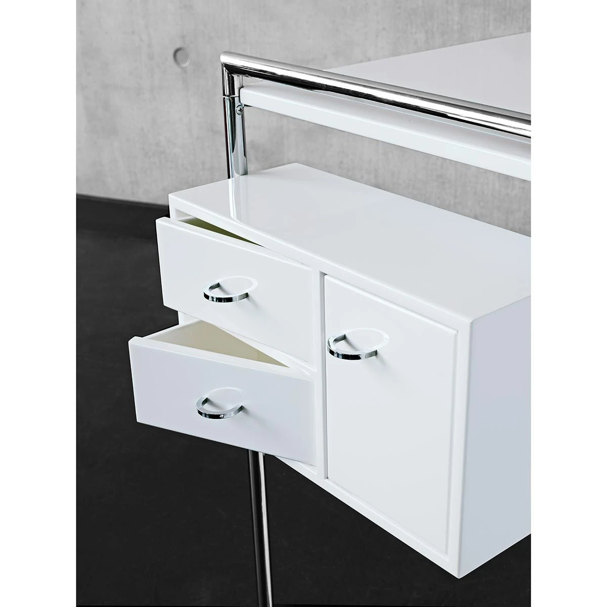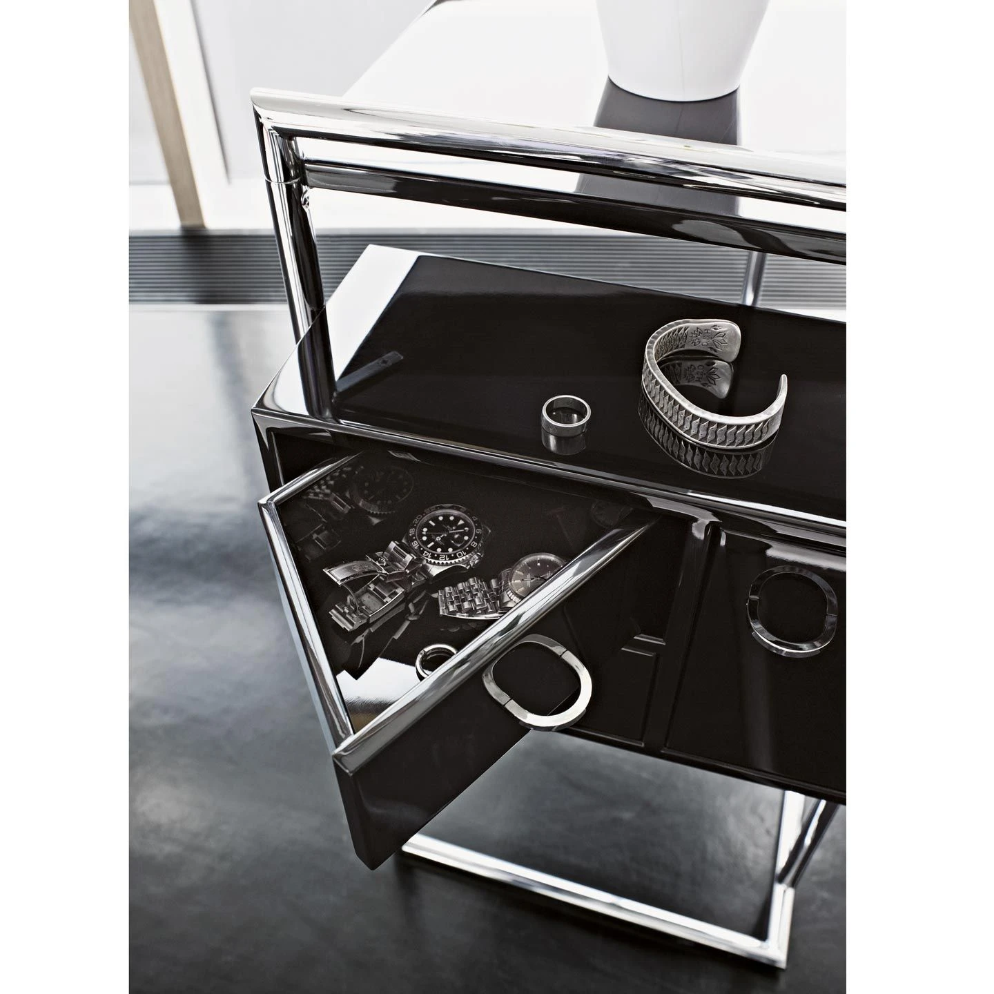 Tabletop and suspended box with two swivel drawers and one door MDF high-gloss lacquered in black or white.
