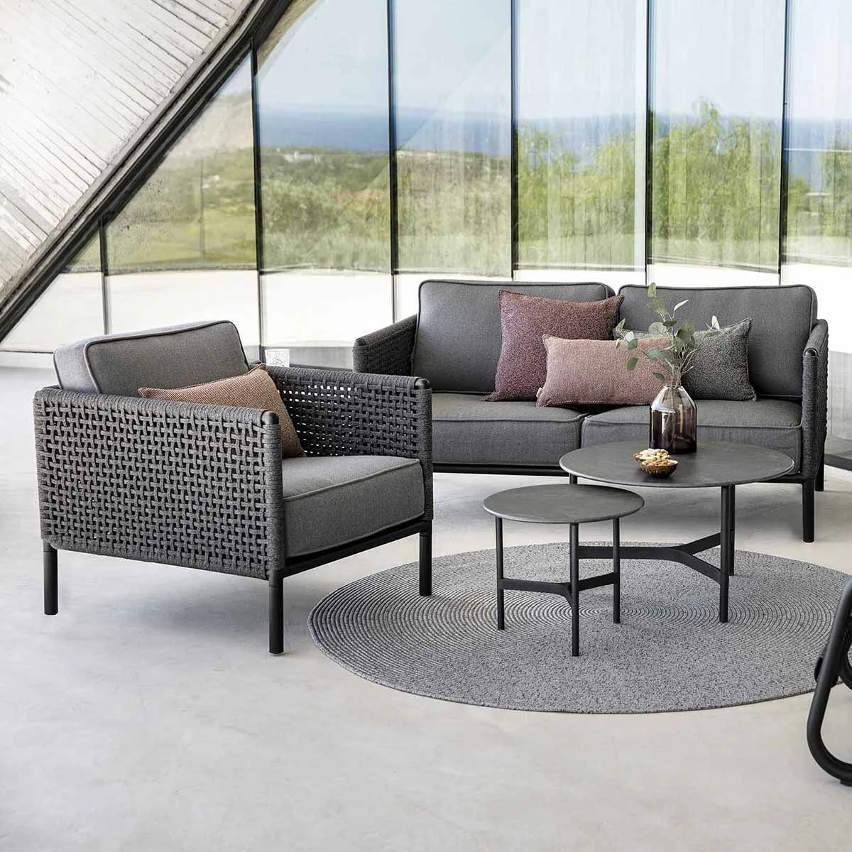 | Finish 2 | Dark Grey Soft Rope on Bordeaux Frame, Dark Grey Soft Rope on Lava Grey Frame |
