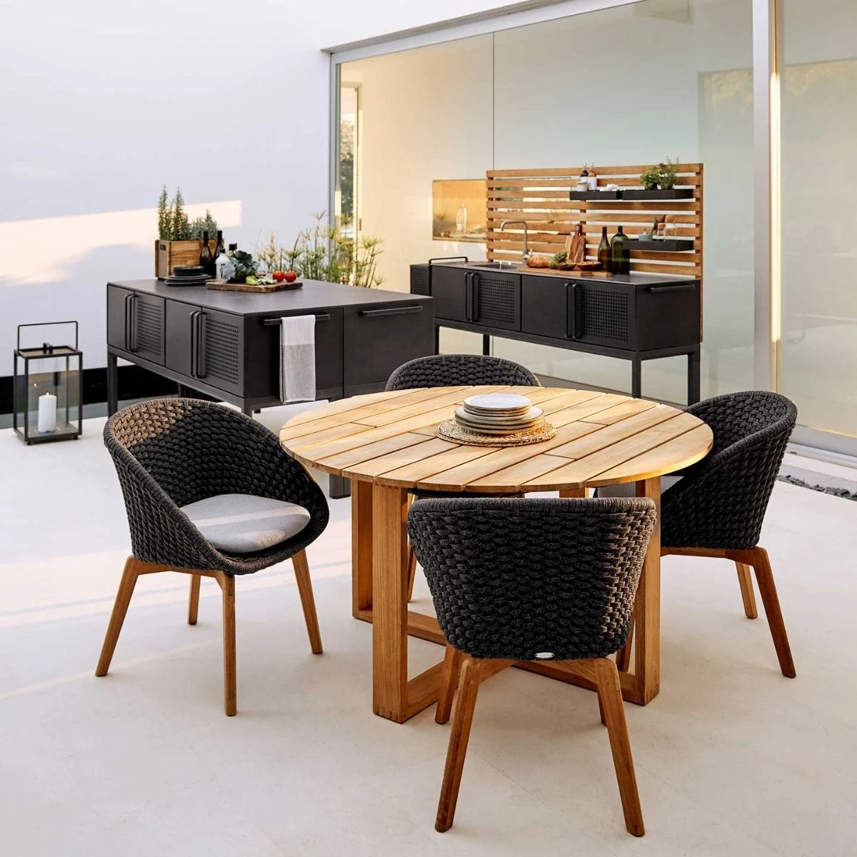 The Endless collection of dining tables offer an elegant outfoor dining solution combined with the warmth of natural grade A certified sustainable Teak wood. The 130cm diameter comfortably accommodates four people; also available is a 170cm diameter and two sizes of rectangular tables – contact the store for more information.