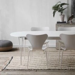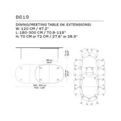 The B619 is an extendable dining table which extends from 180cm to 300cm and includes 2 extension leaves. The Table Series includes the Superellipse™, the Supercircular™, circular, square and rectangular tables designed by Piet Hein, Bruno Mathsson, and Arne Jacobsen in 1968, inspired by the designer Piet Hein’s solution to a traffic problem at Sergels Torg in Stockholm: a super elliptical roundabout. The ingenious shape was conceived in his mathematical mind. The formula based shape has no ends and this is why the Super-Elliptical table can be seen as a democratic table where everyone has an equal position. The tables come in a wide variety of shapes and sizes and are available in standard laminate, special Fenix laminate and walnut veneer with a base in either chromed or powder coated steel.