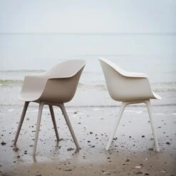 The Bat outdoor dining chair is a re-imagining of the popular design by Gam Fratesi for use outside. The Beetle and Bat Dining Chairs’ elegant single-curved outer shells now benefit from the addition of UV additive to the polypropylene formula from which they are injection molded, which strengthen and protect against the exposure to UV radiation. A palette of two colors – New Beige and Alabaster White – for the shells and matching bases across both chairs enables them to fit perfectly into a variety of contexts. A version with a fabric seat cushion (to be stored inside) is also available.