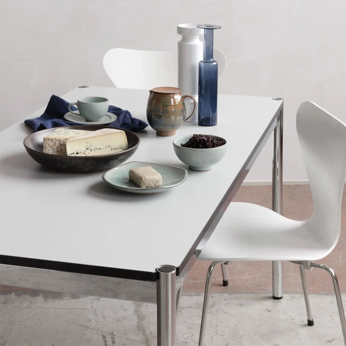Fritz Haller’s tables fit perfectly with the versatile USM modular furniture range. With many table sizes and surfaces available, the right solution can be found for every environment. Laminate, linoleum or wood veneer tops. Contact the store to discuss the many different options and accessories.