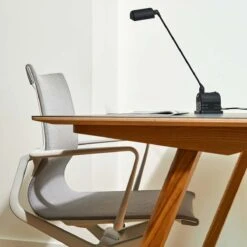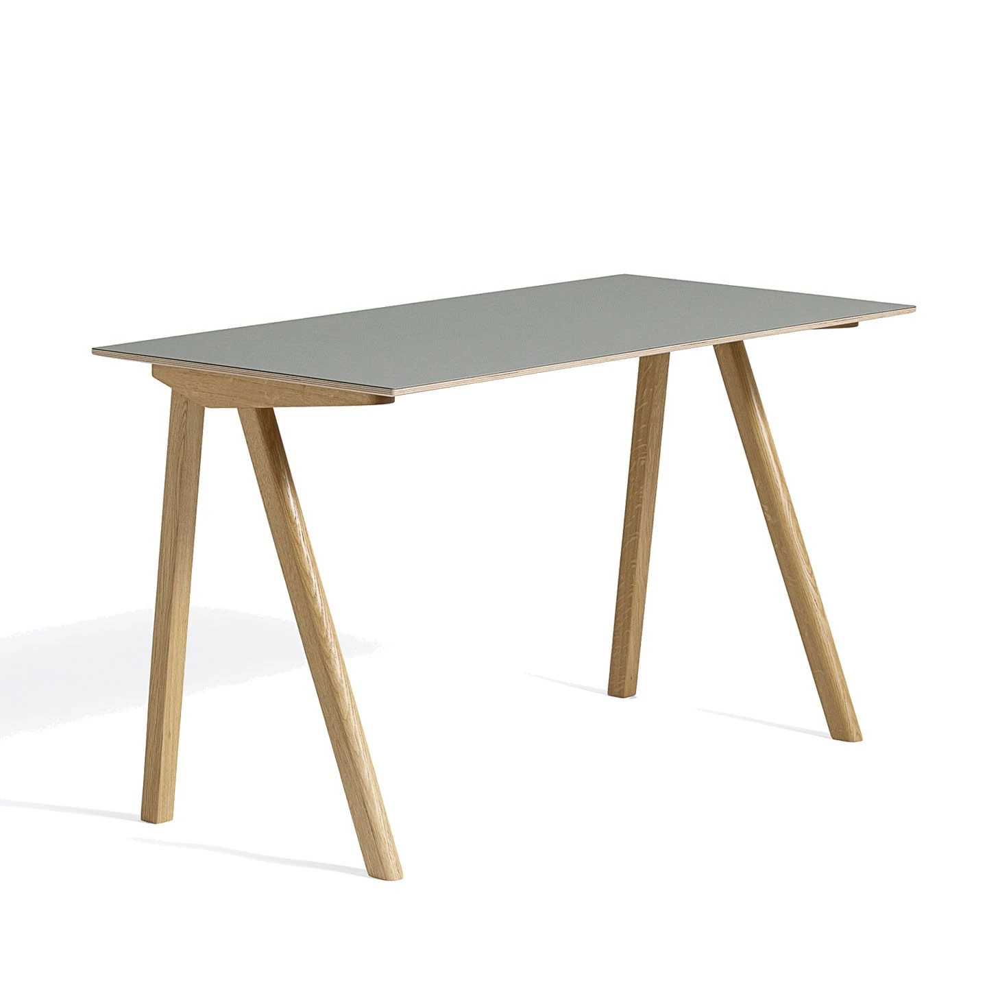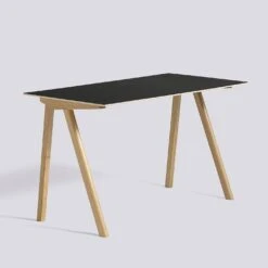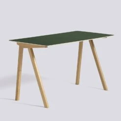 Designed by the Bouroullecs for the University of Copenhagen, this simple wooden desk updates traditional educational furniture. It is available with an oak frame and a linoleum top. Please contact the store for other options in this range. NB – the conifer green lino is darker than shown in the images; it is more of a bottle green.
