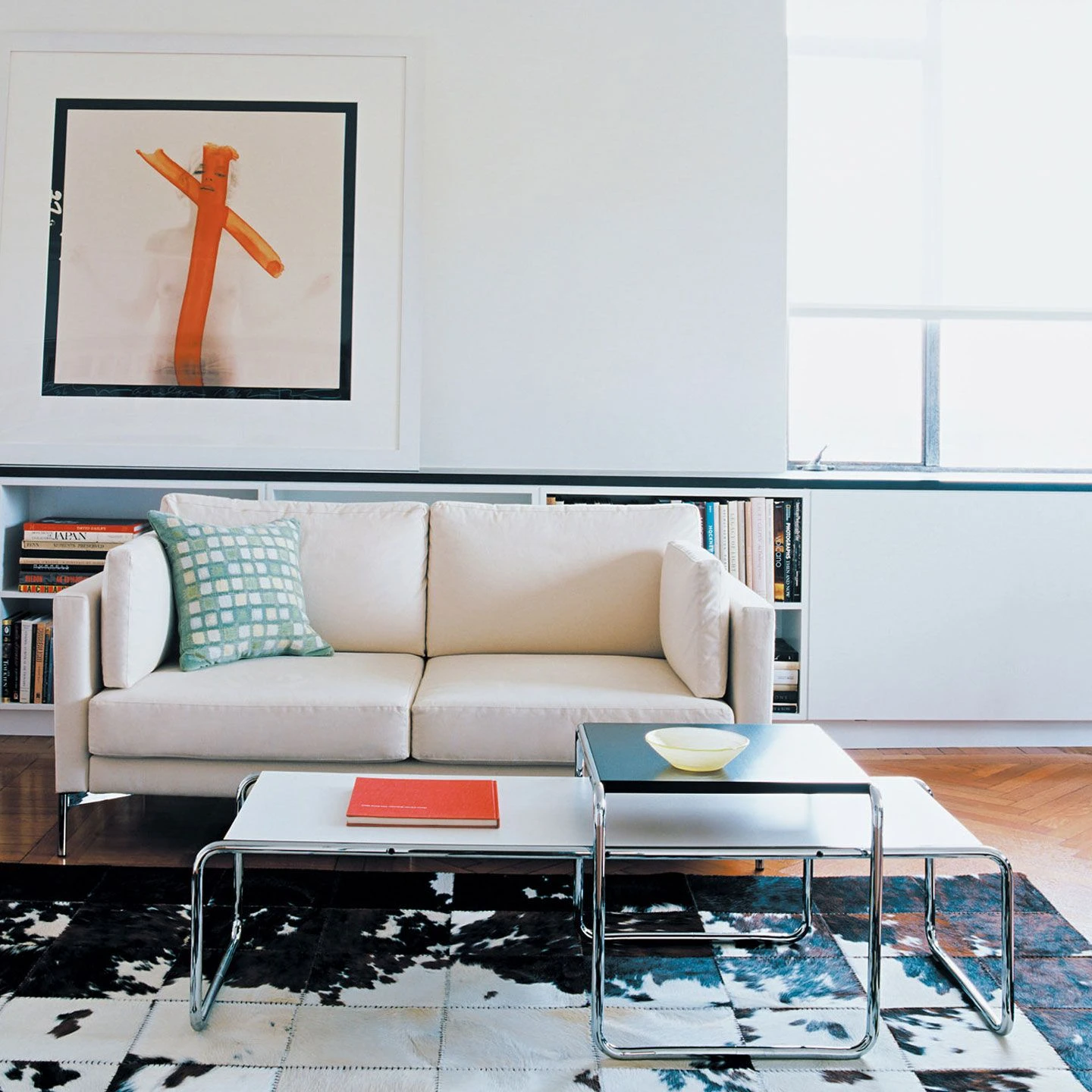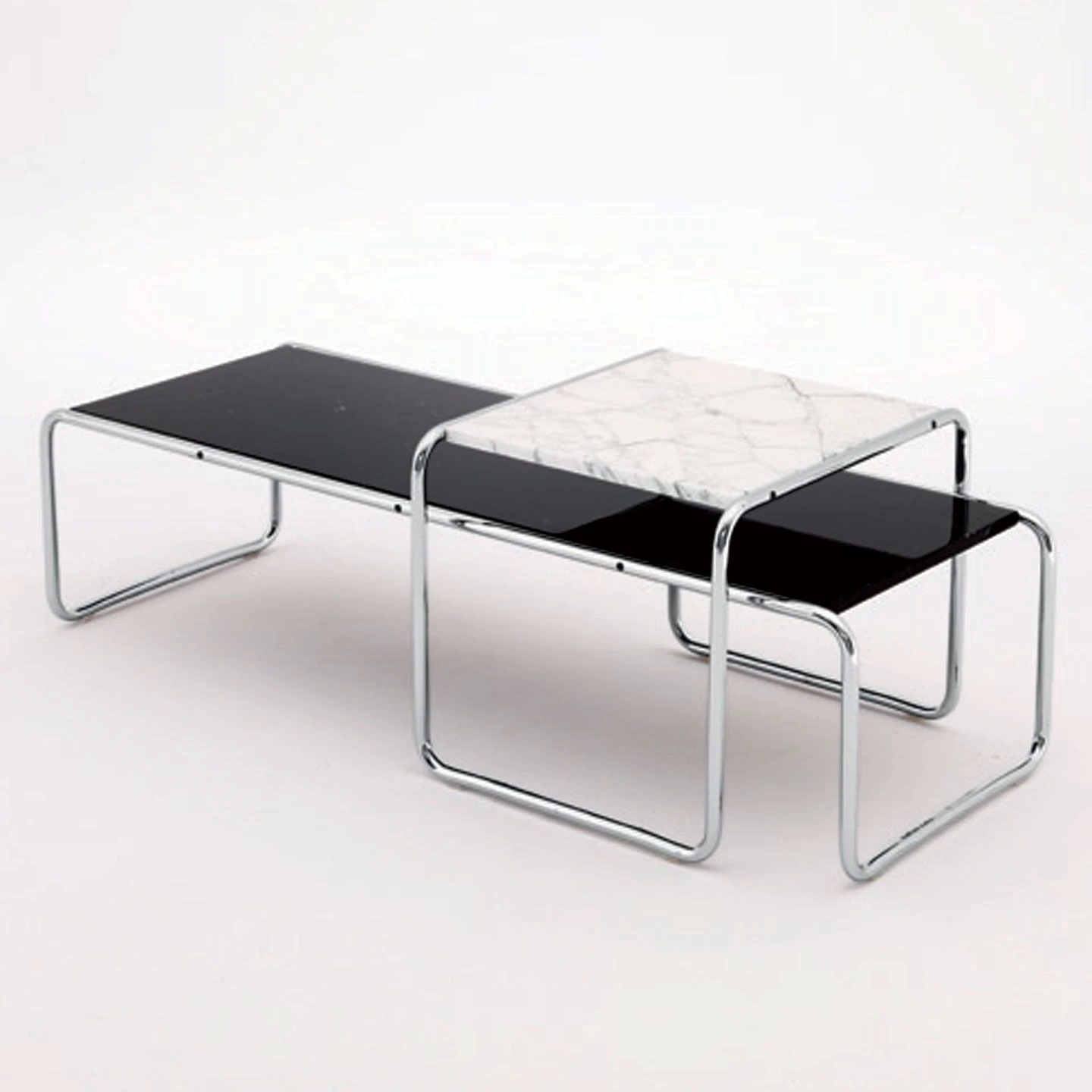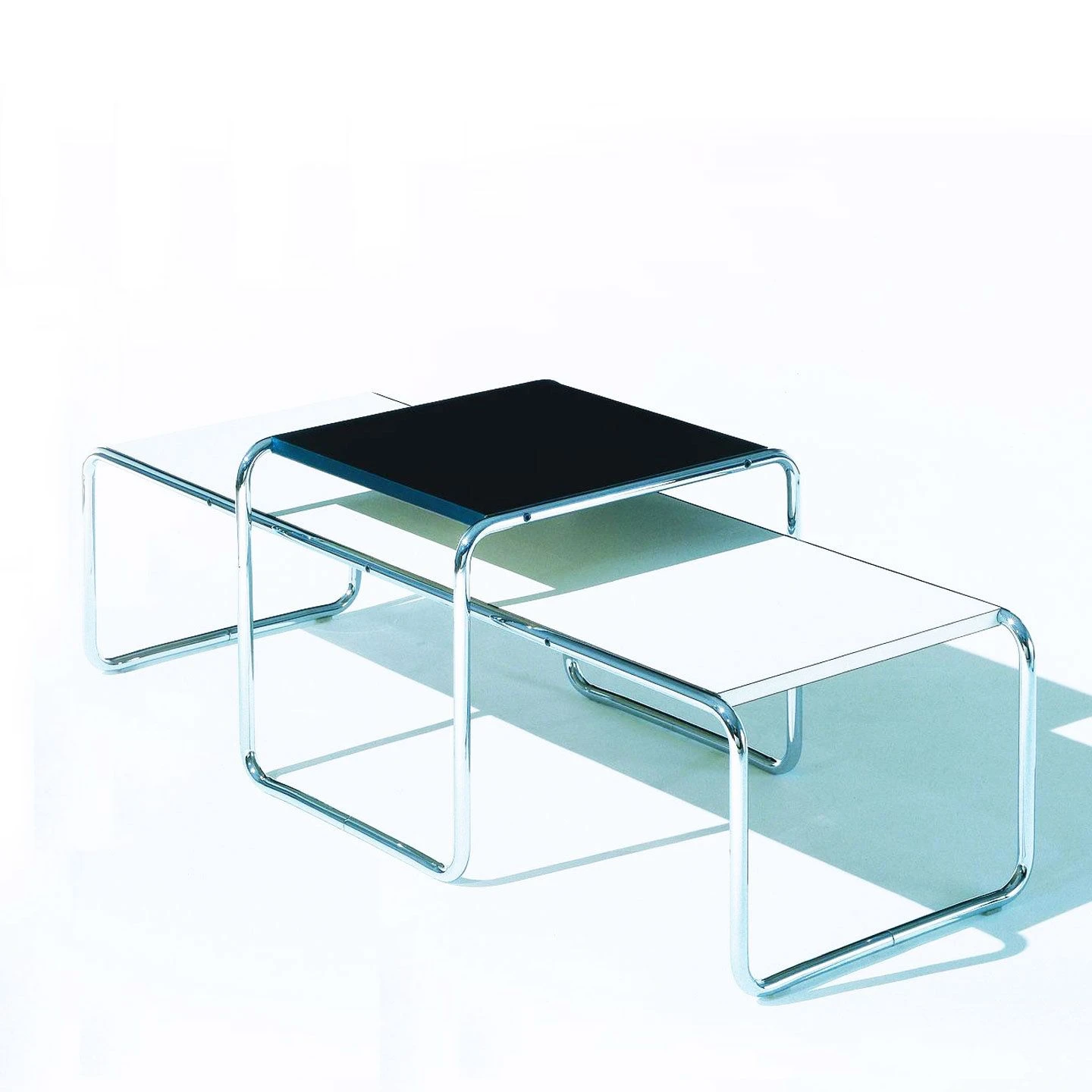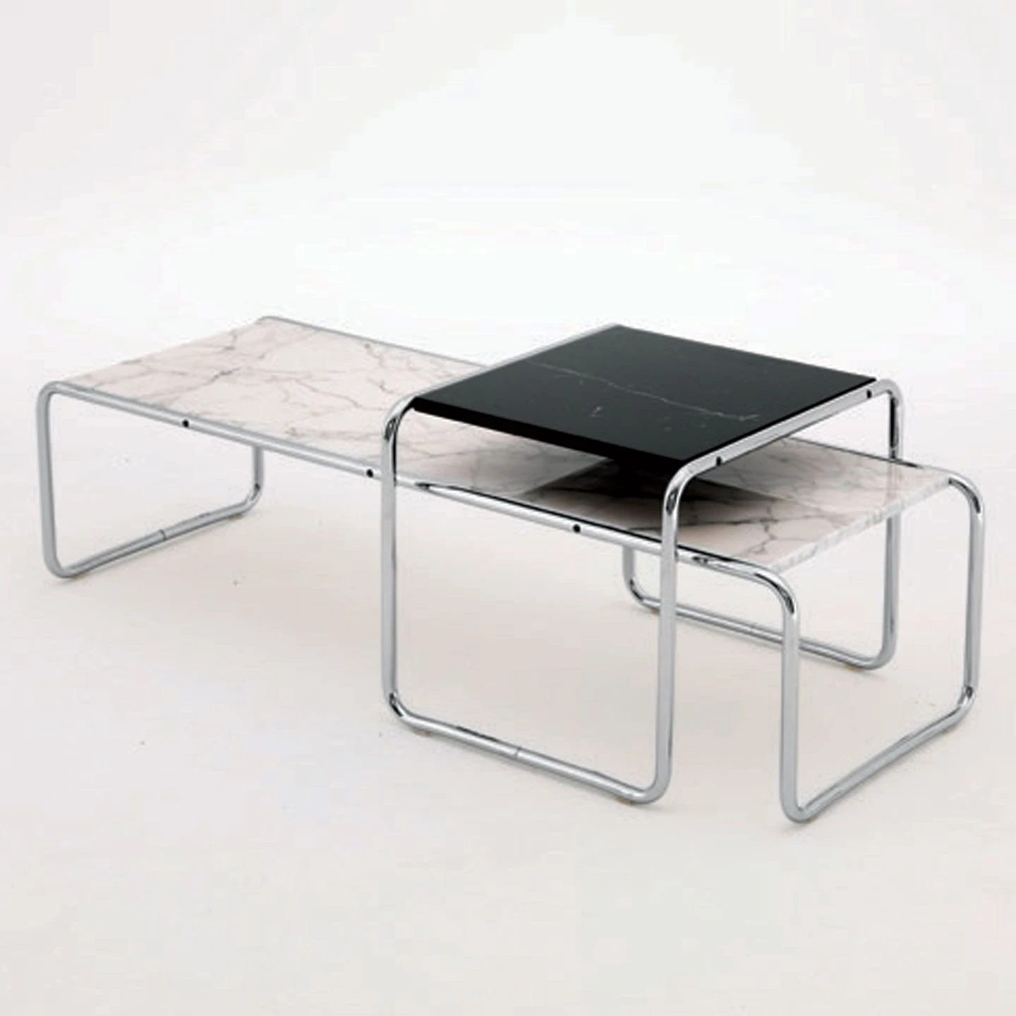 As a Bauhaus apprentice in 1925, Marcel Breuer conceived the low table as a companion to the Wassily chair, the first tubular steel design based on the tubed frame of a bicycle. Table top features a satin finish, smooth plastic laminate in either black, white or red. Frame and legs are seamless tubular steel in polished chrome finish. Each table is stamped with the Knoll logo, an edition number and Marcel Breuer’s signature. New marble top finishes available on a 10 week lead time.