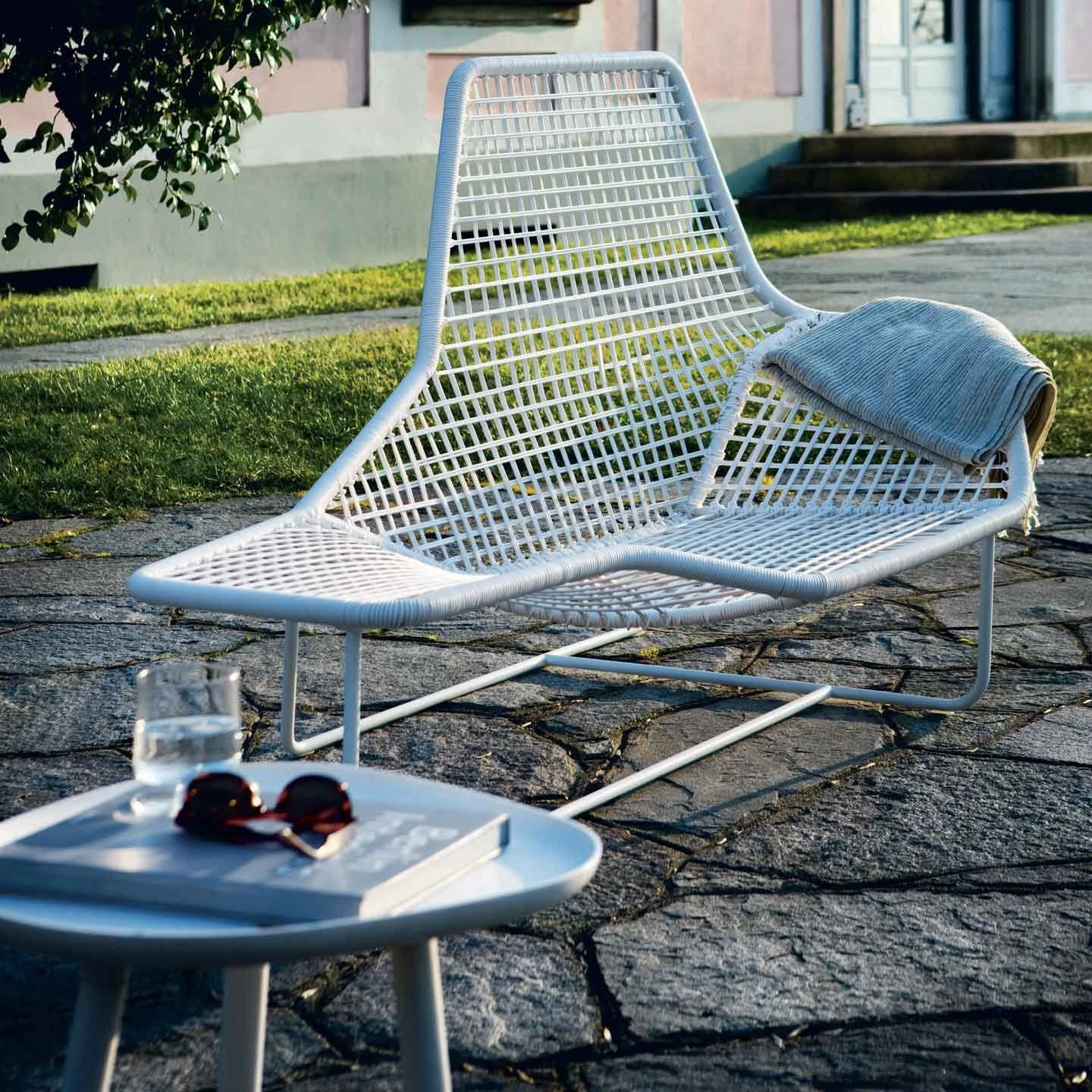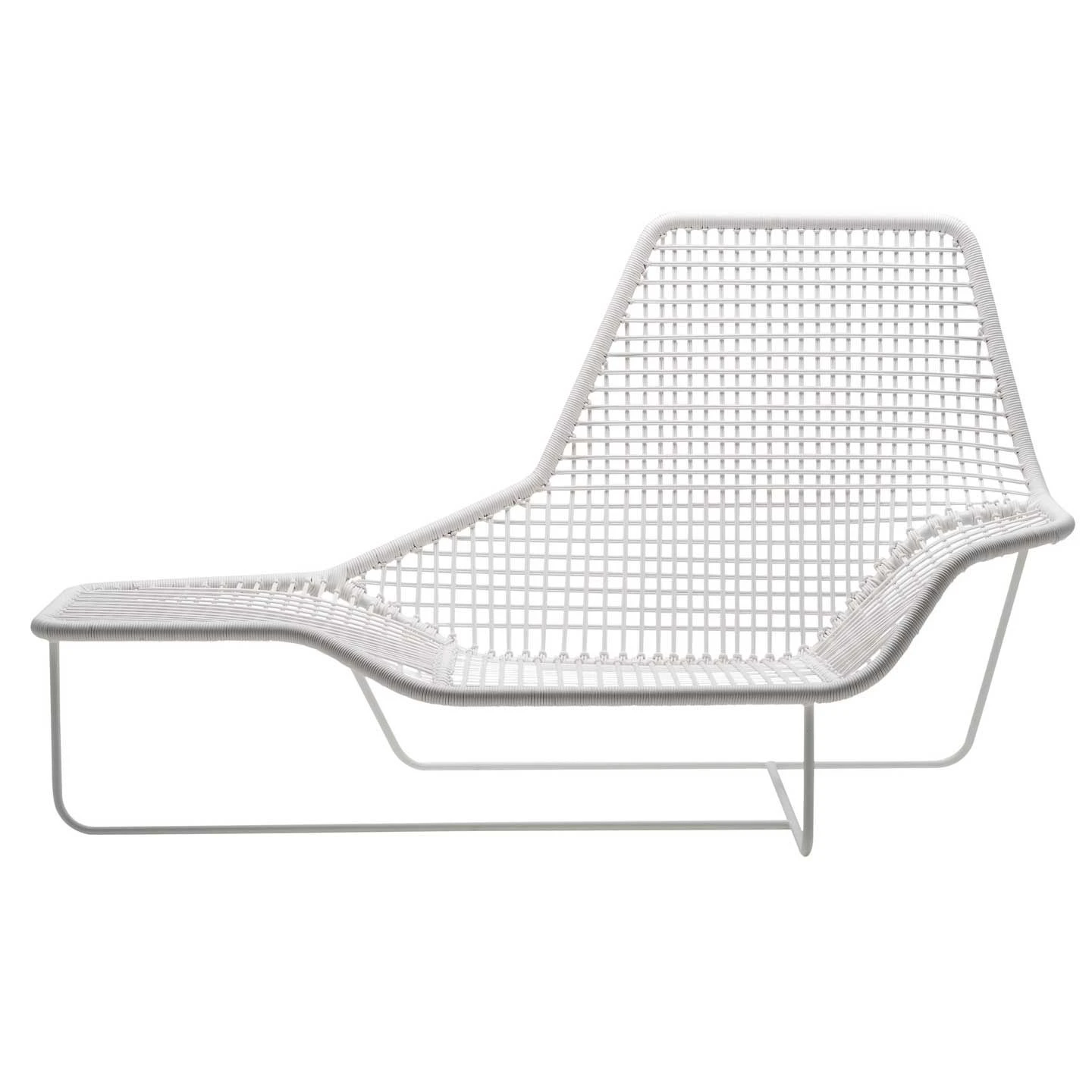 A chaise suitable for outdoor use designed by Ludovica and Roberto Palomba in 2011. A painted steel frame woven with nylon-reinforced PVC fibre in either black or white. The languid shape is a nod to the Eames’ La Chaise, itself an homage to Gaston Lachaise’s Floating Figure.
