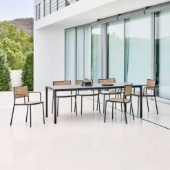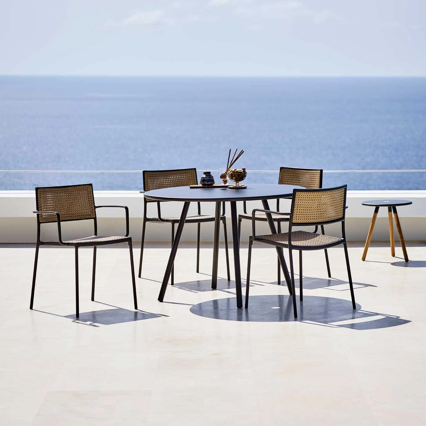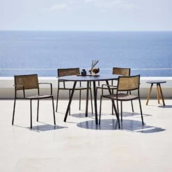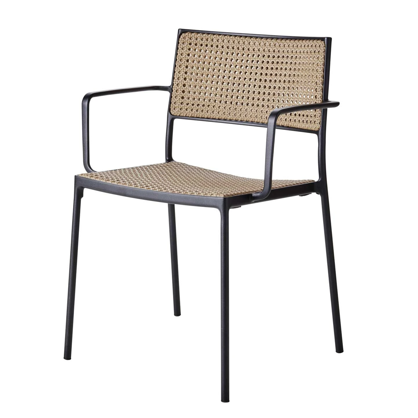 The Less chair with seat and back in natural cane French weave. The die-cast aluminium frame is durable and hard wearing which makes it ideal for moving around and stacking. The Less is optimal for use both outdoor and indoor – as it comes with a special outdoor powder coat that secures strong weather-resistance. NB – MUST BE ORDERED IN PAIRS