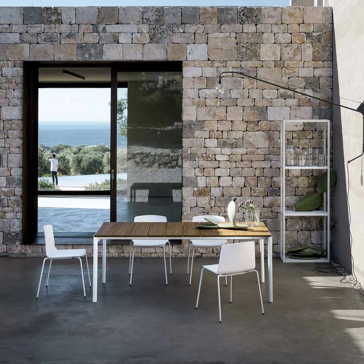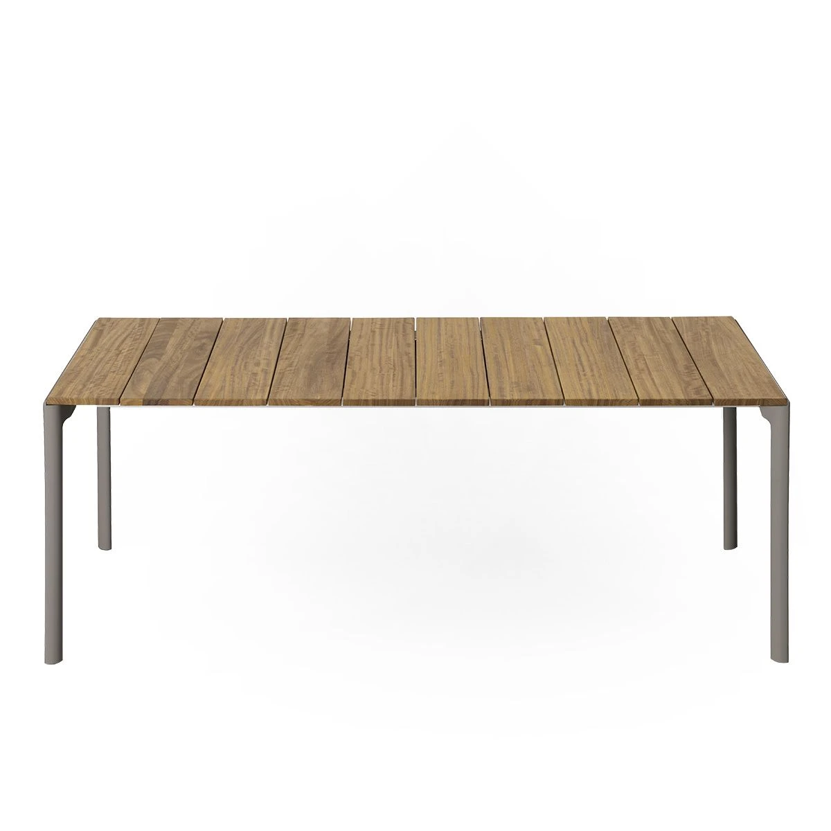 Making Slatted Outdoor Table 219cm by Bartoli Design for Kristalia. The top can be left in its natural state, and over time it will acquire an unmistakable silvery shade, or it can be treated with oil to allow it to retain its original colour. Legs available in London Grey, Olive Green or Painted White. This is the non-extendable version – please find extendable versions below. Please contact the store for more info.