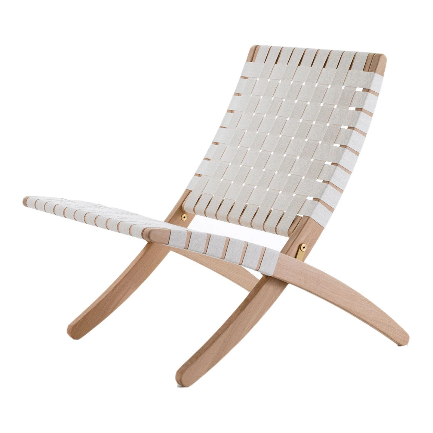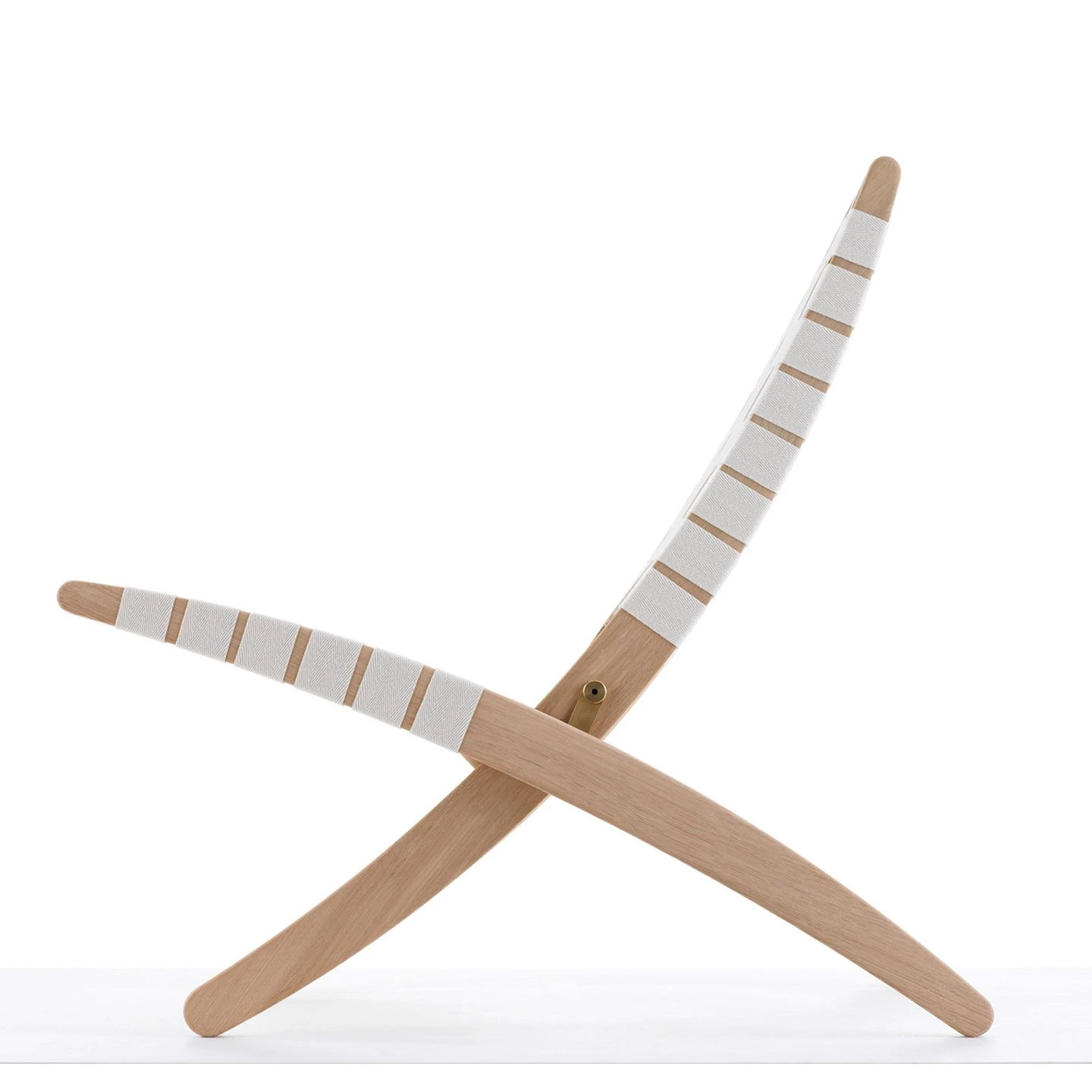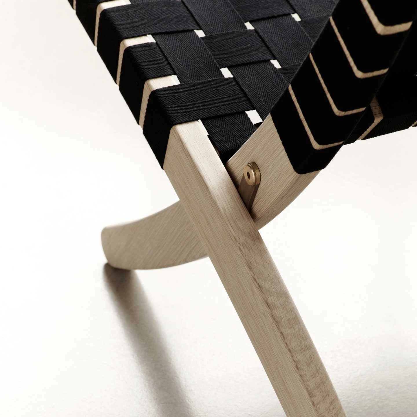 A light and flexible folding chair that fits well in a modern living room, in an open kitchen or similar, designed by Morten Gøttler. The chair can easily be stored by either hanging on the wall or by being placed in a stand on the floor. The webbing on the seat and back gives great support and seating comfort.