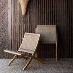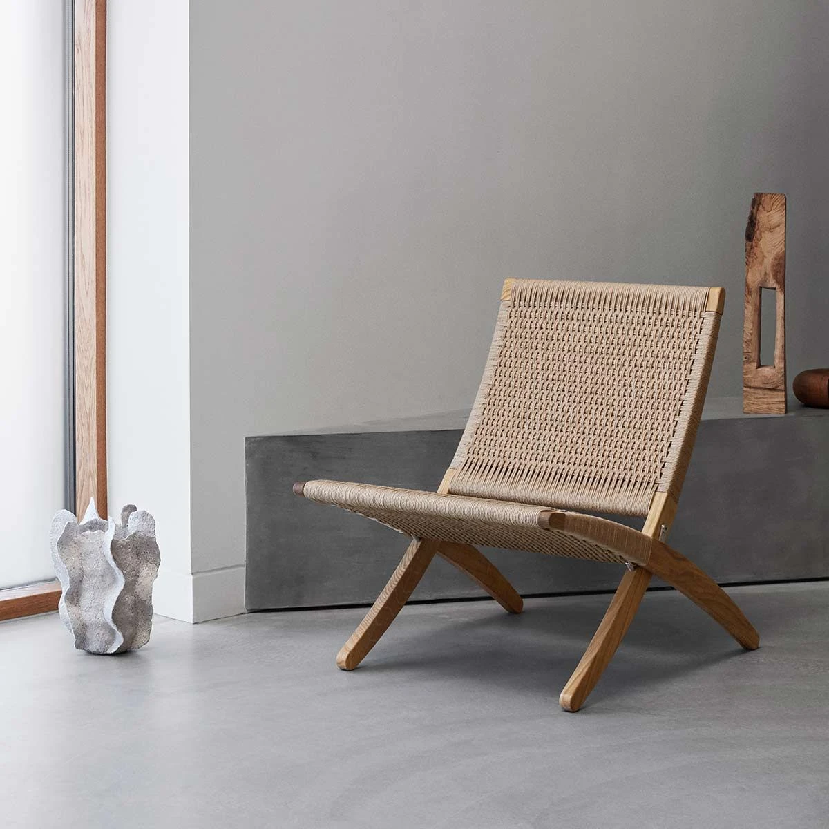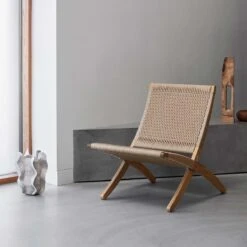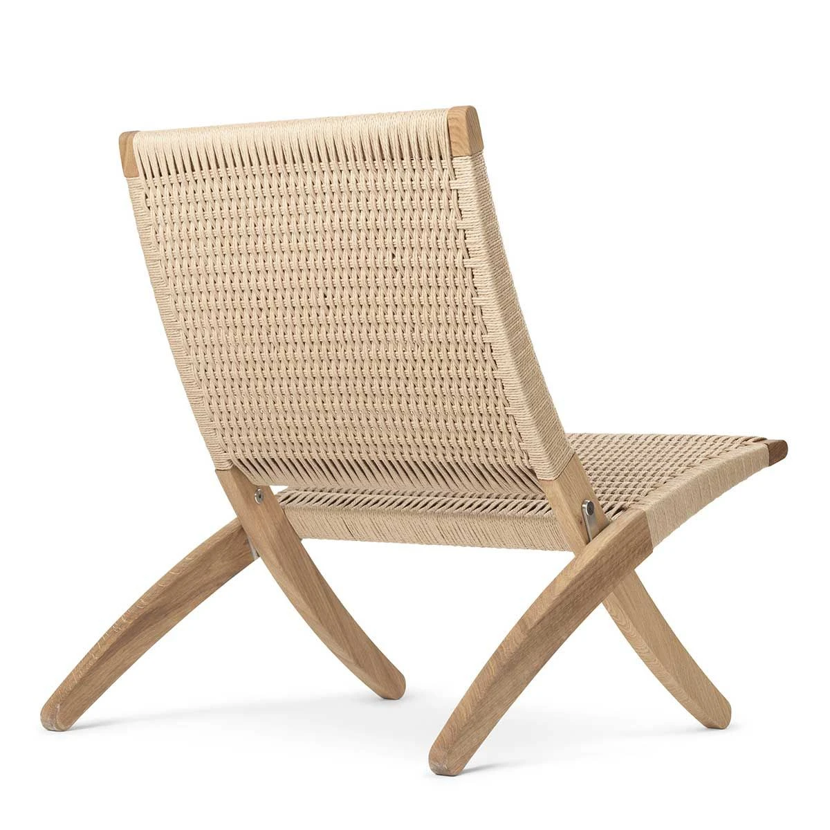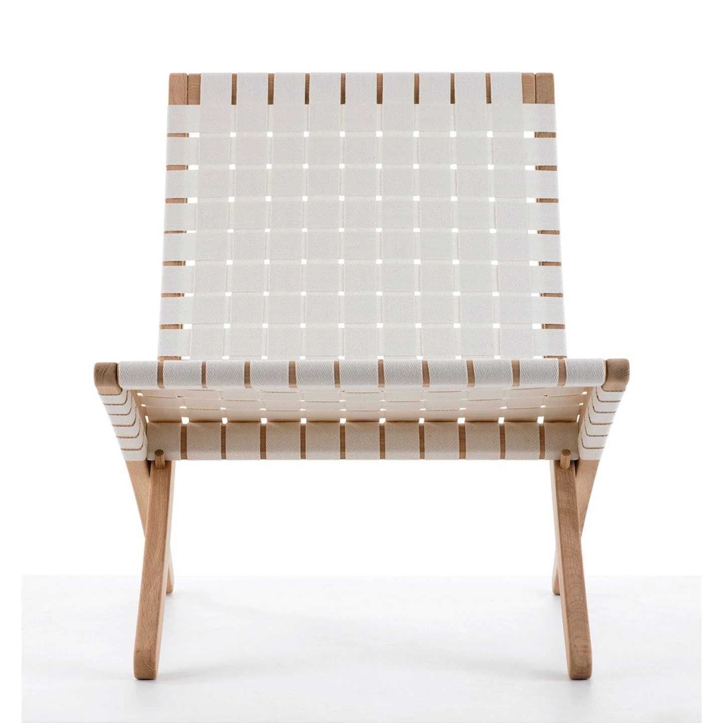 A light and flexible folding chair that fits well in a modern living room, in an open kitchen or similar, designed by Morten Gøttler. The chair can easily be stored by either hanging on the wall or by being placed in a stand on the floor. The webbing on the seat and back gives great support and seating comfort.