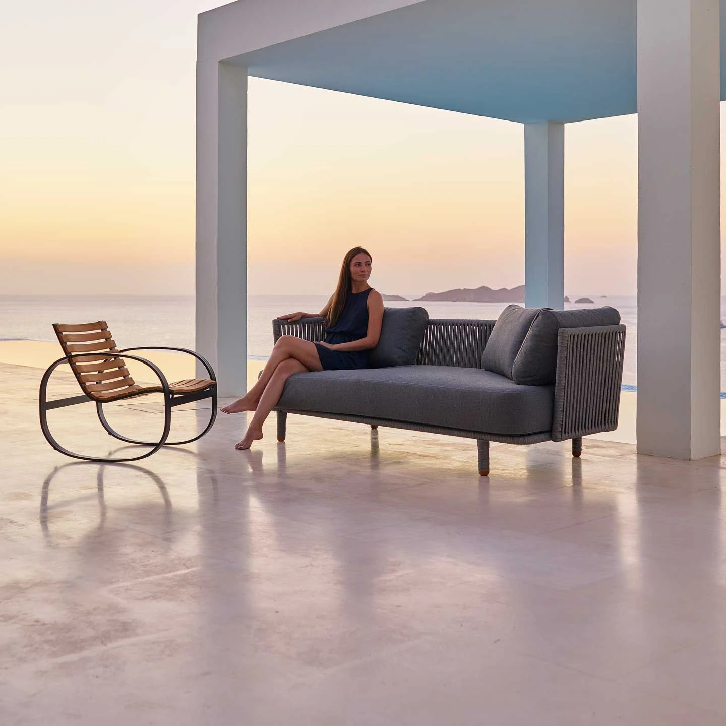 Moments 3 Seater Sofa is designed by the Danish design duo Foersom & Hiort-Lorenzen MDD. Moments is setting new standards for multi flexible design with its elegant minimalistic Scandinavian design. It is produced with Cane-line Soft Rope and Softtouch QuickDry cushions. The Cane-line QuickDry system is a special technique for your comfort – after approx. one hour from rainshowers cushions are dry again.