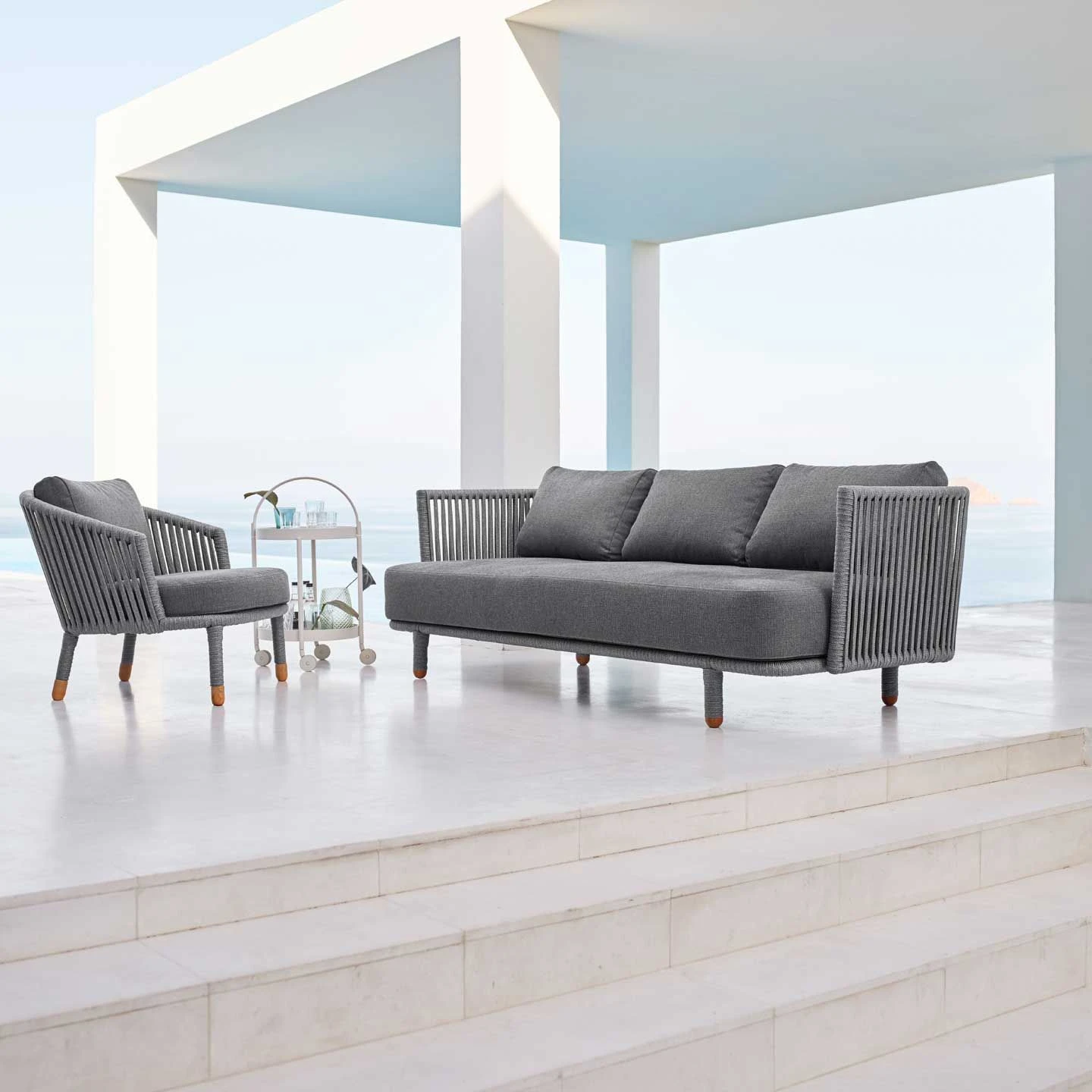 The Moments lounge chair is designed by the Danish design duo Foersom & Hiort-Lorenzen MDD. Moments is setting new standards for multi flexible design with its elegant minimalistic Scandinavian design. It is produced with Cane-line Soft Rope and Softtouch QuickDry cushions. The Cane-line QuickDry system is a special technique for your comfort – after approx. one hour from rainshowers cushions are dry again.