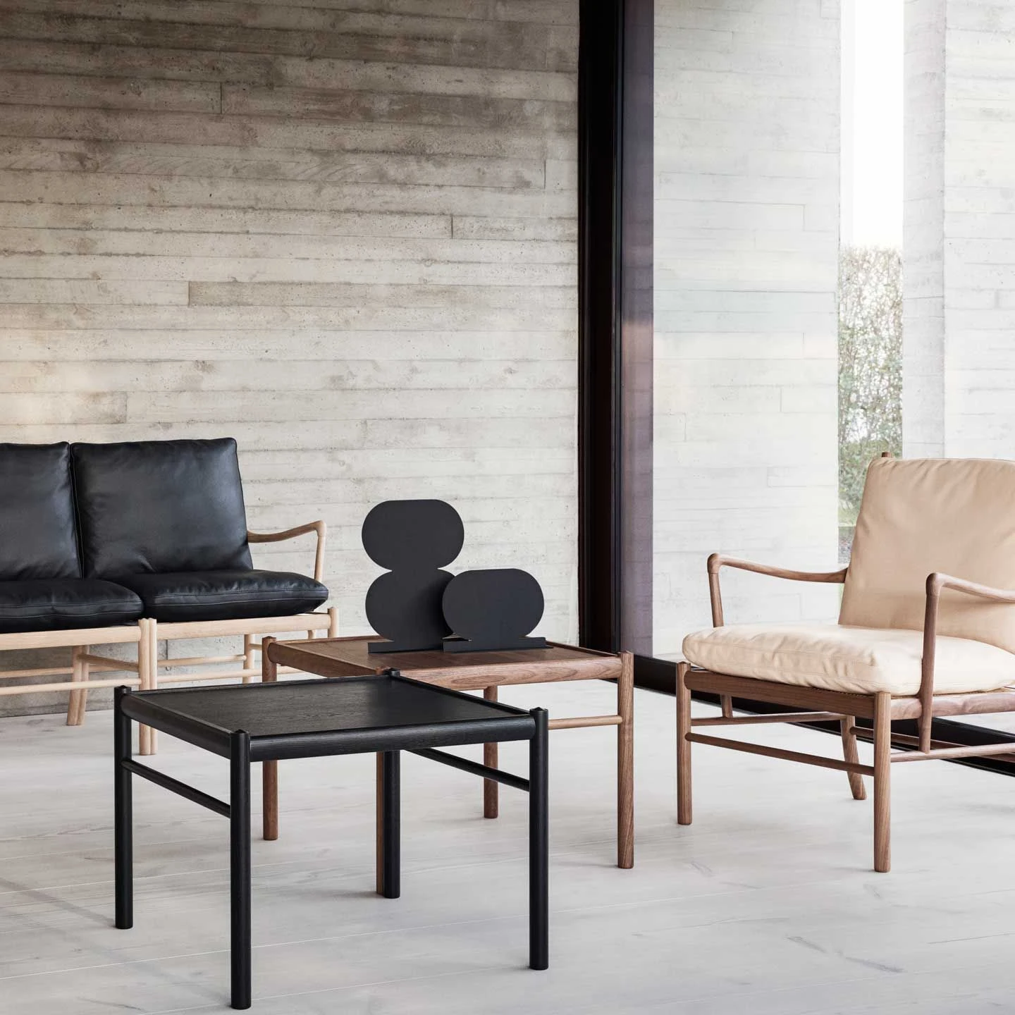 The simple, timeless design of the Colonial table supports the Series’ visual expression and provides a harmonious focal point for the entire series. Designed by Ole Wanscher in 1964. Available in oak and walnut, the coffee table features a square veneer tabletop.
