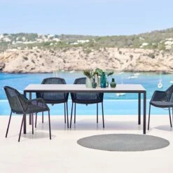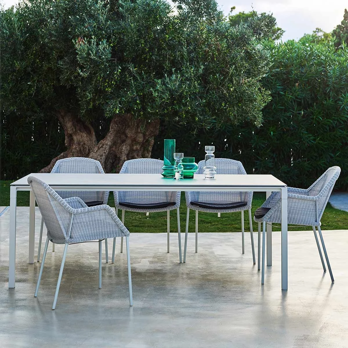 The minimalist Pure table is designed by the Danish designer duo Foersom & Hiort-Lorenzen MDD. The tabletop is made of ceramic, and the simple, clean-lined frame is offered in powder-coated aluminium. The tabletop is available in concrete grey, basalt or nero black. The combination makes for a light, almost floating design. The Pure table is easy to maintain, scratch-resistant and can be wiped over with a damp cloth. The table is also UV-resistant, meaning it can stand outside in all types of weather.