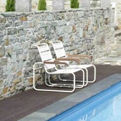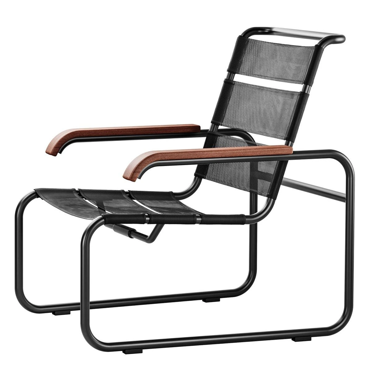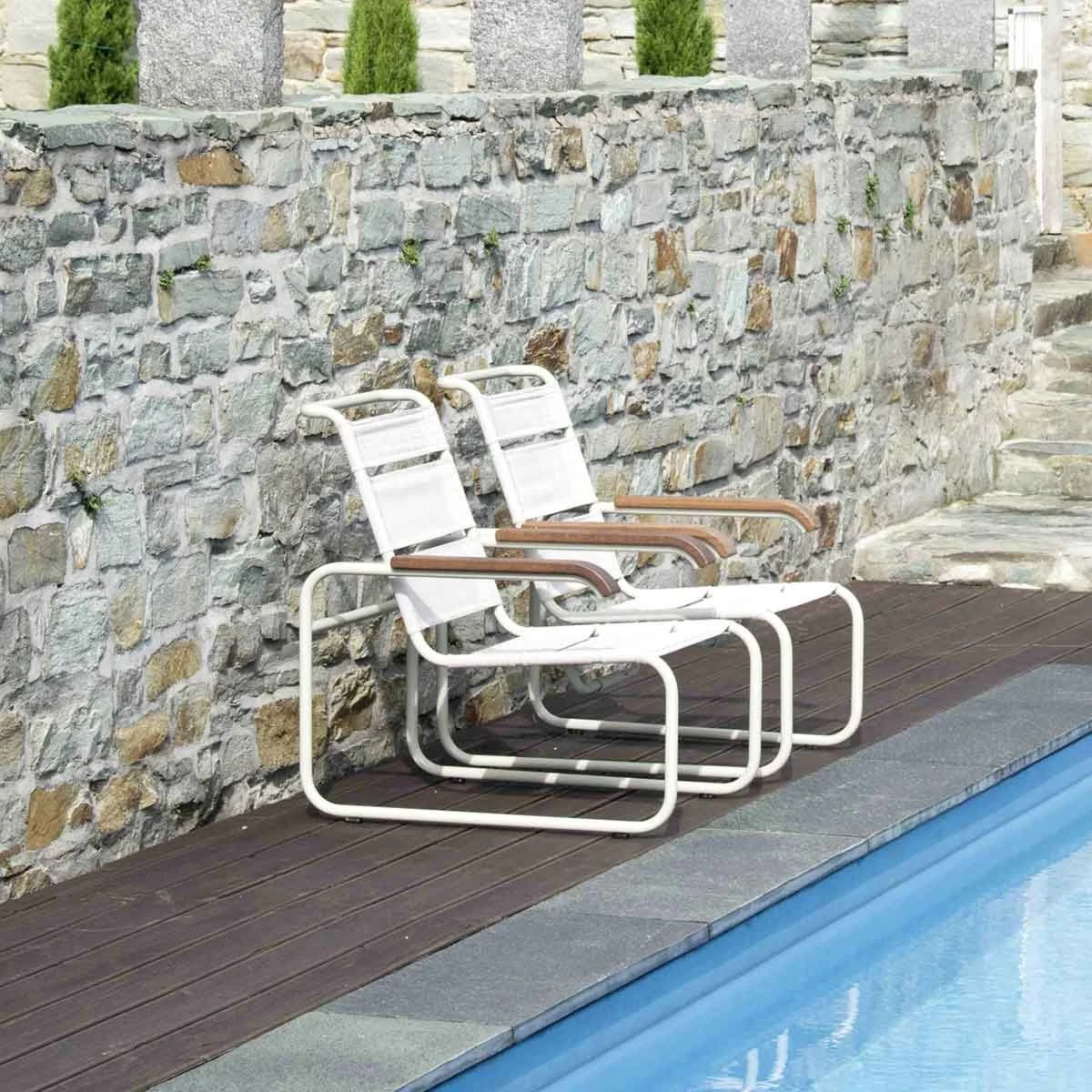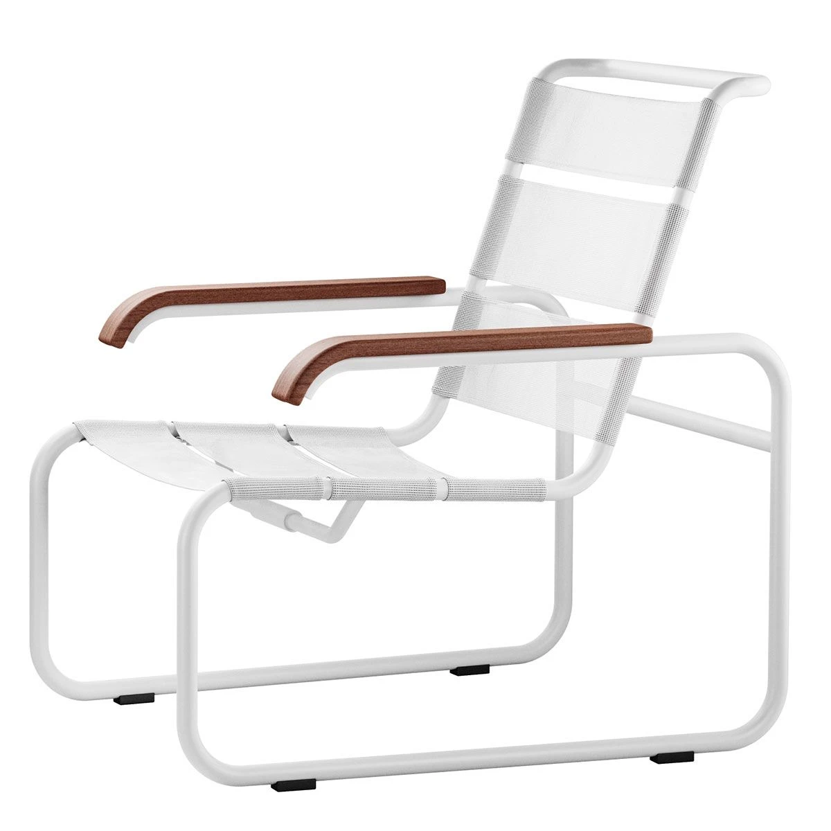 white, natural or black synthetic mesh seat and backrest with optional cushion, oiled iroko armrests