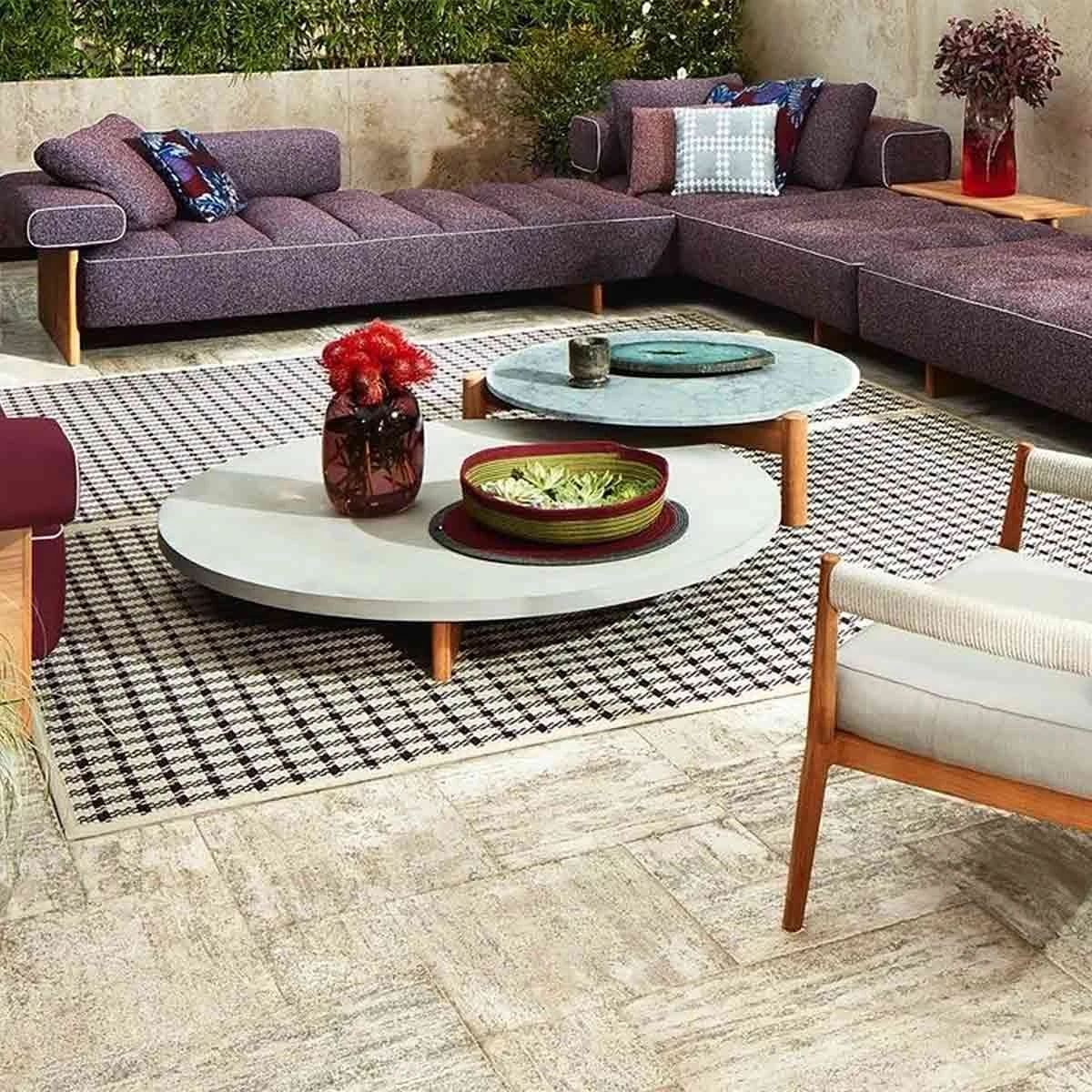 Spider Outdoor Rug by Cassina. Produced in 2020 the Spider Rug is processed using three yarns: blue, burgundy and beige which results in a classic tartan finish suitable to almost any outdoor environment or furniture arrangement. The hi-tech polypropylene fibre guarantees colourfastness to sunlight ensuring durability, resistance and versatility. The spider is also eco-friendly thanks to its low environmental impact and 100% recyclability. Please contact the store for more info.