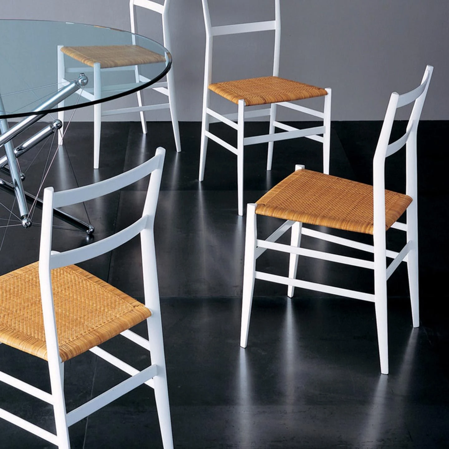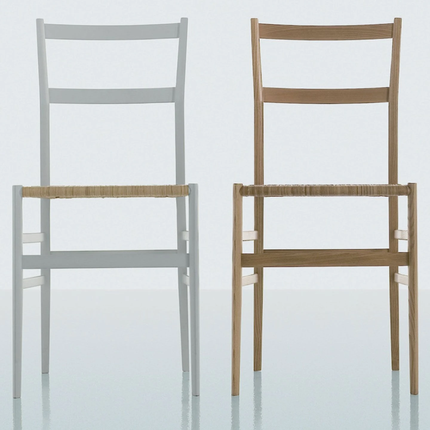 The Super Leggera (699) Chair is composed of an ashwood frame which can be ordered in it’s natural finish or lacquered black or white. The seat is always finished in natural India cane.