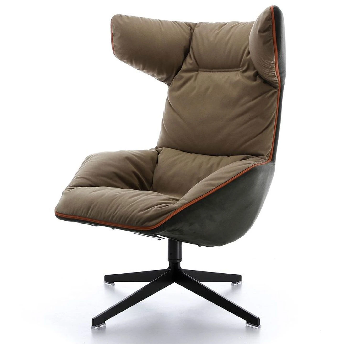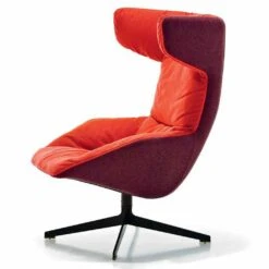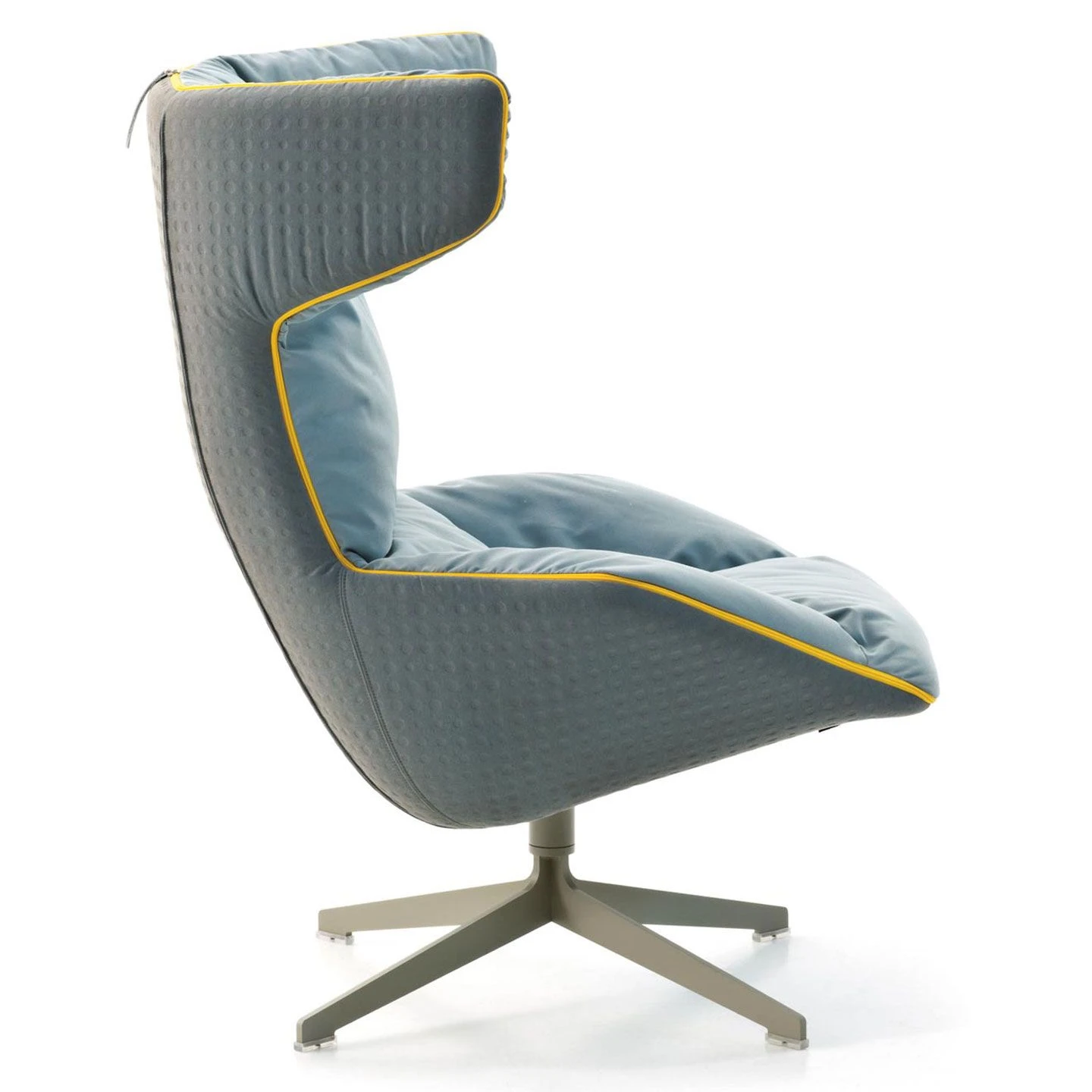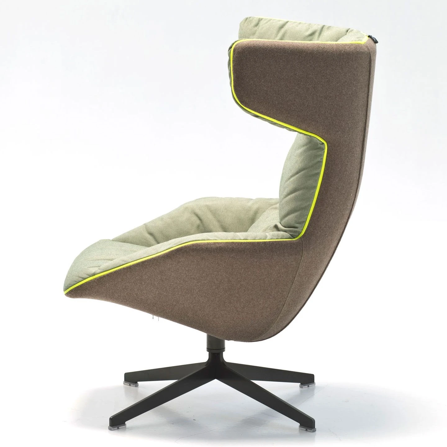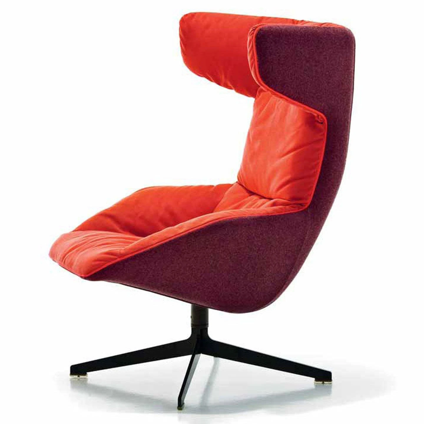 Alfredo Häberli’s design from 2002 has been updated to include a luxurious inner ‘quilt’ lining, which is attached by zips in a range of striking colours. Häberli has also designed special fabrics to be used – the quilt is a fabric called ‘Plot’ and the outer shell is covered in ‘Highfield’. Leather or Divina felt can also be chosen for the outer shell. The 4-star swivel base is powder coated in oxide red, sand grey or rifle brown-grey. Contact the store to see samples of more colour combinations.