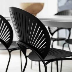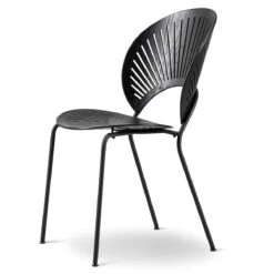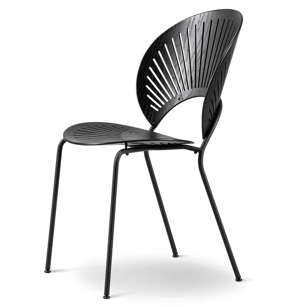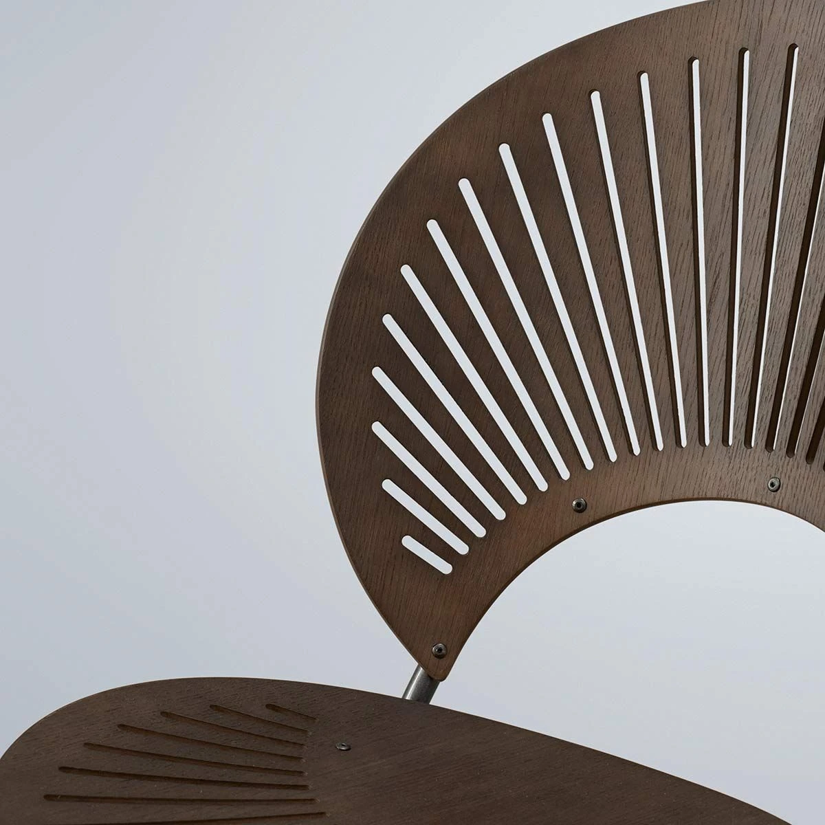 Shaped laminated veneer wood seat and back in walnut, black-stained ash, lacquered oak, smoke-stained oak, grey-stained oak