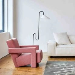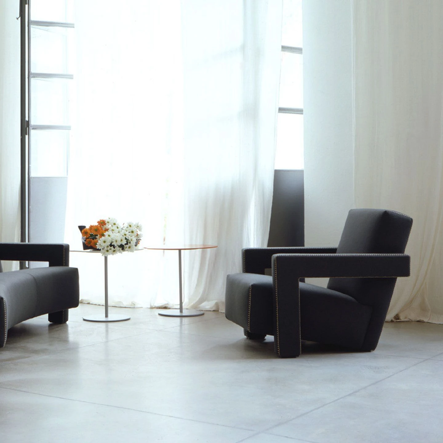 The Utrecht can be upholstered in fabric or leather and is finished with off-white contrast blanket stitching. Zig zag and black or coloured contrast stitching is also available by request – contact the store.