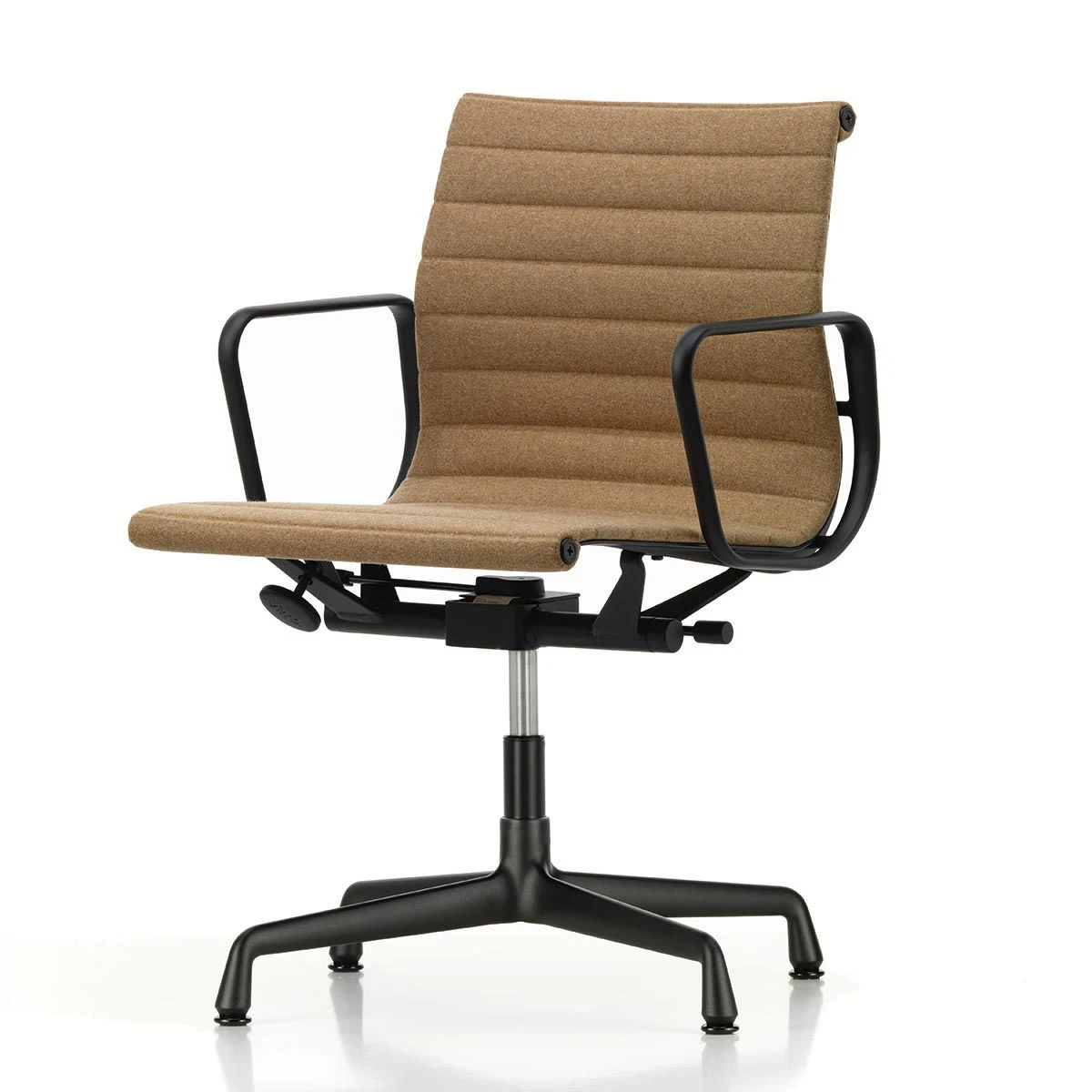 Four-star base in die-cast aluminium, with a polished or chrome-plated finish or powder-coated in deep black. Fitted with felt glides for hard floors – contact the store if you require hard glides for carpet.