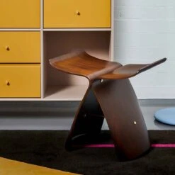 Designed by Sori Yanagi in 1954, the Butterfly Stool blends Eastern shapes with the technique developed by Charles and Ray Eames of shaping plywood. The gently curved silhouette is reminiscent of the wings of a butterfly. Collection Vitra Design Museum. Contact the store for more options