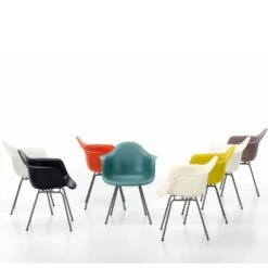 Four-legged tubular steel base, chrome-plated or powder-coated. The powder-coated version is suitable for outdoor use. (DAX = Dining height Armchair X-base)