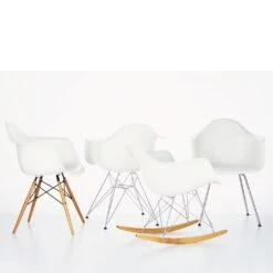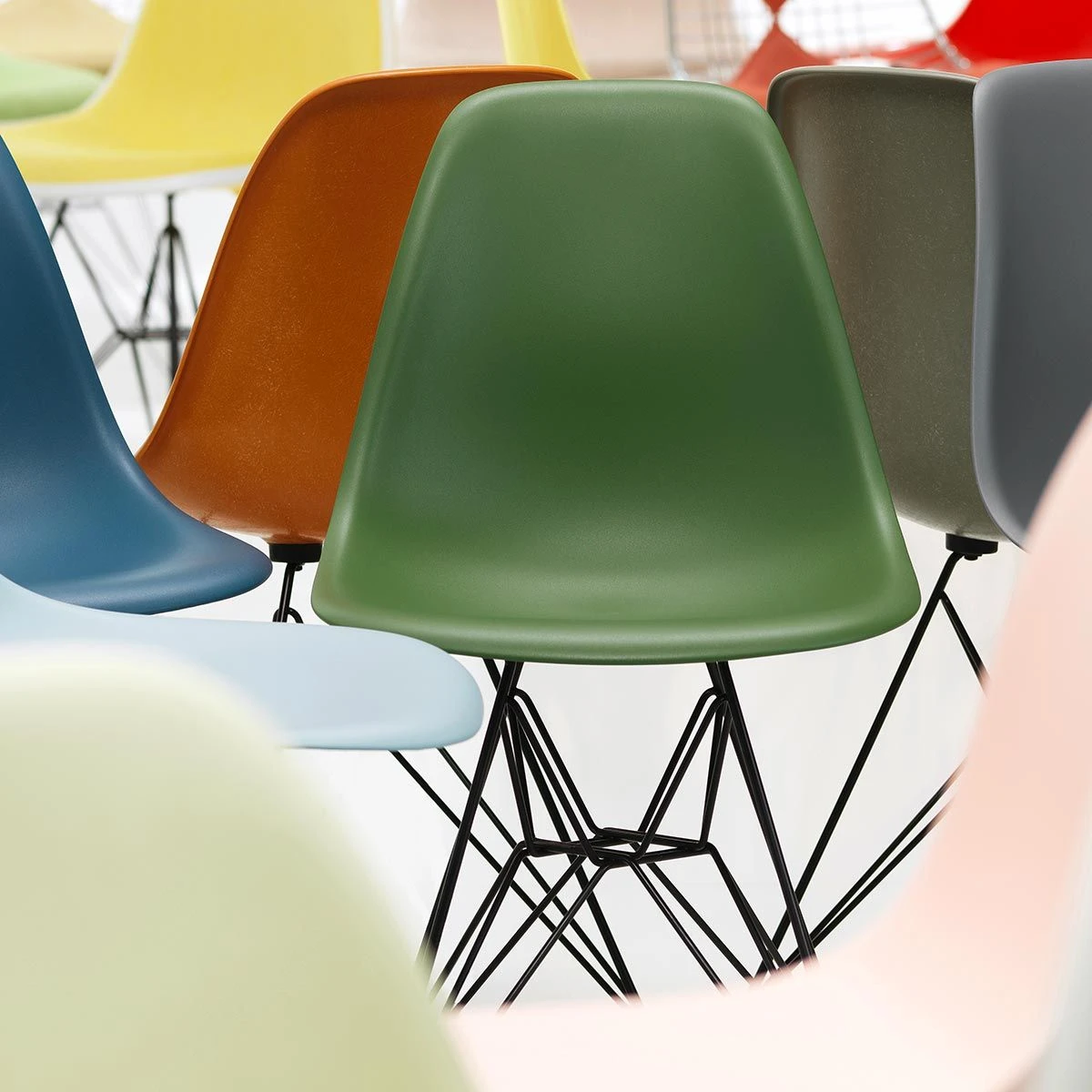 As of January 2024, Eames plastic chair shells are manufactured by Vitra from post-consumer recycled plastic (see below). Due to the composition of the recycled material, the different colour variations of the seat shells are interspersed with tiny specks of pigment.