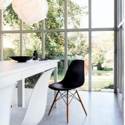 As of January 2024, Eames plastic chair shells are manufactured by Vitra from post-consumer recycled plastic (see below). Due to the composition of the recycled material, the different colour variations of the seat shells are interspersed with tiny specks of pigment.