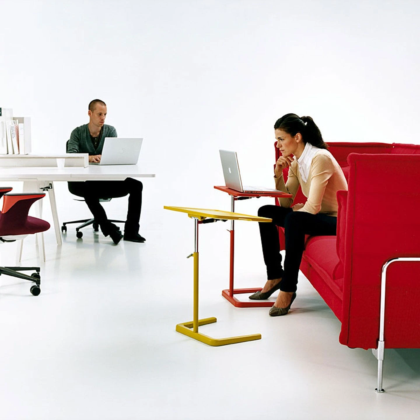 Thanks to technological innovations, a person can work on a laptop computer from anywhere — yet suitable furniture for this purpose is often lacking. NesTable provides a simple and flexible solution to this problem. The surface of this occasional table is height adjustable, which makes it possible to maintain a correct ergonomic working posture, even while working from a sofa or lounge chair