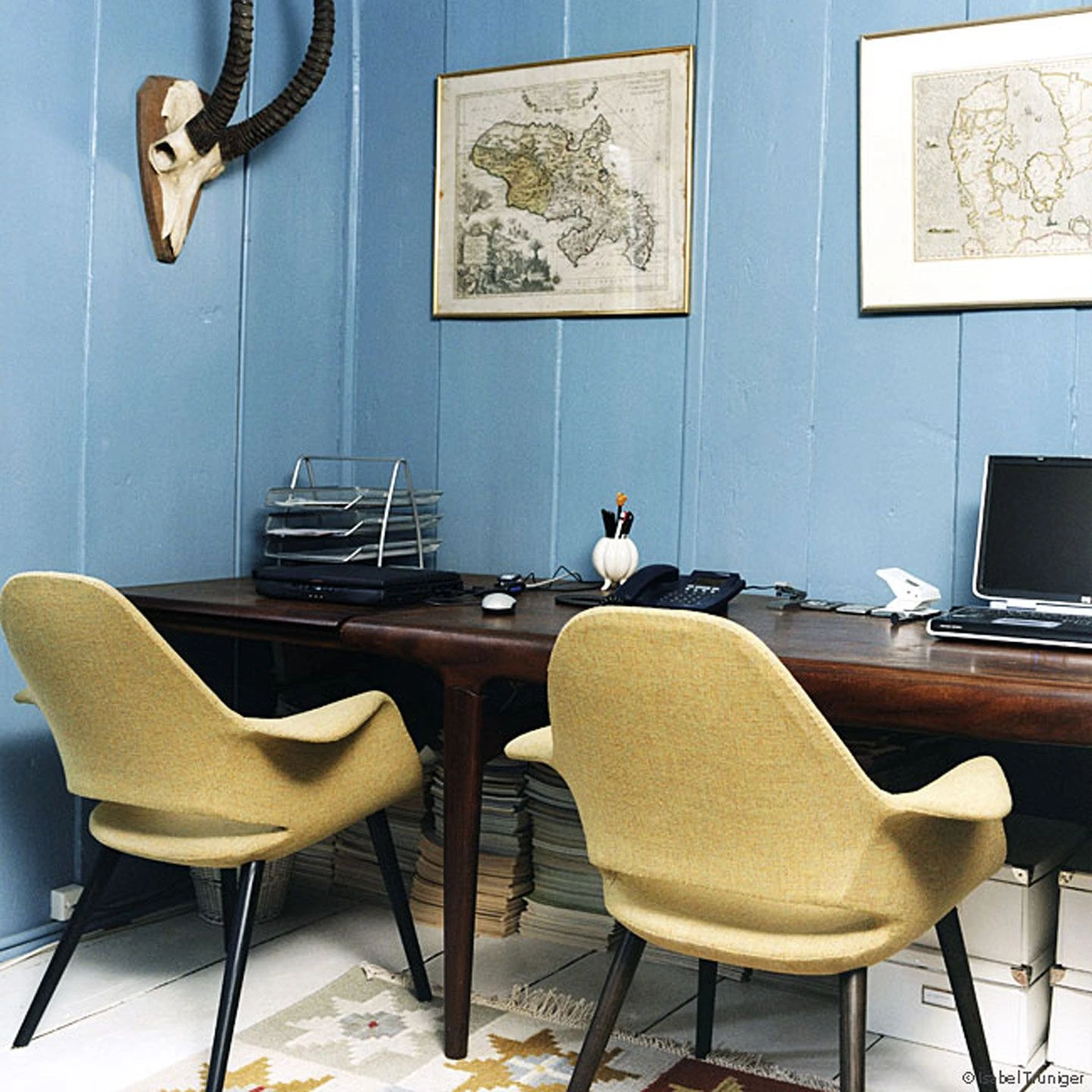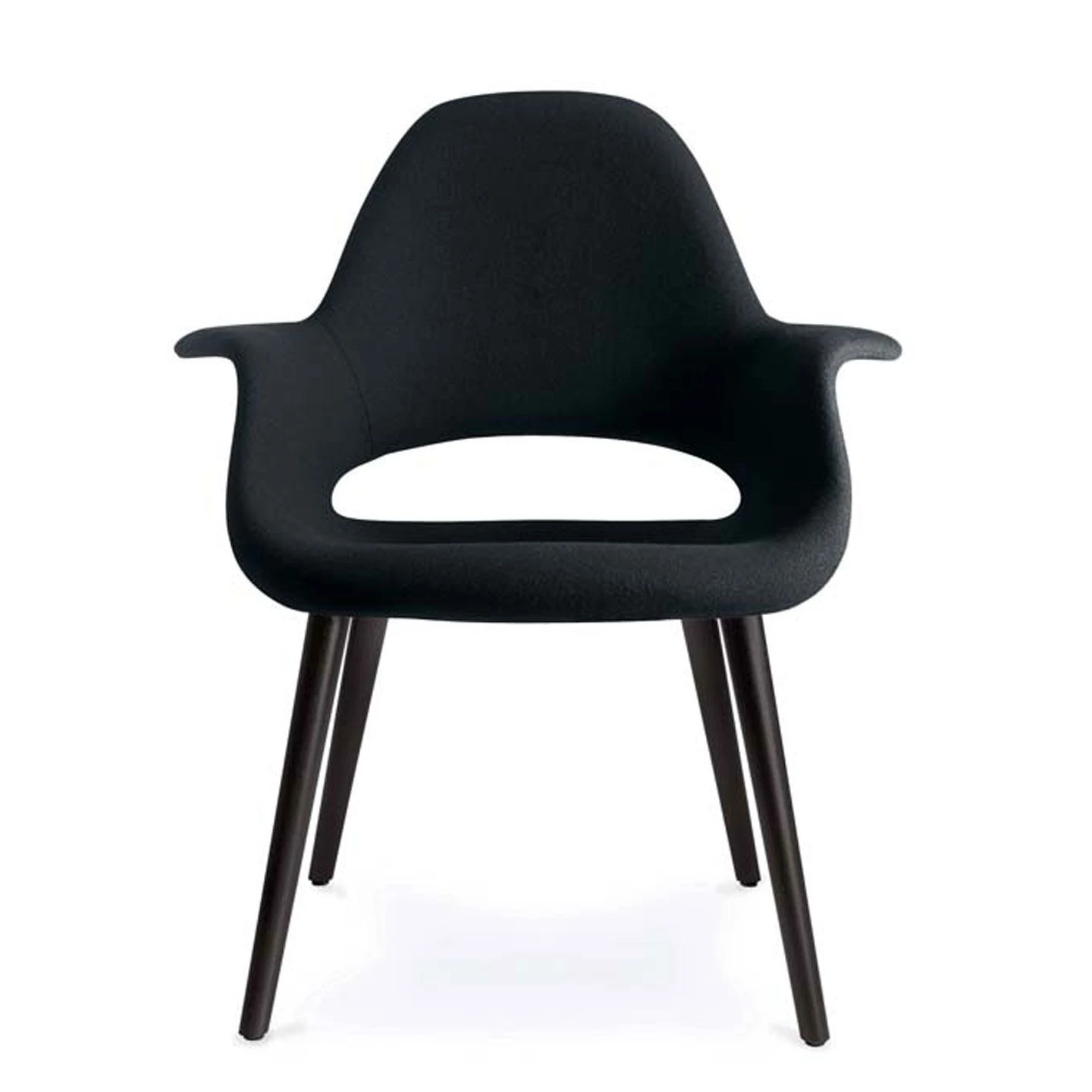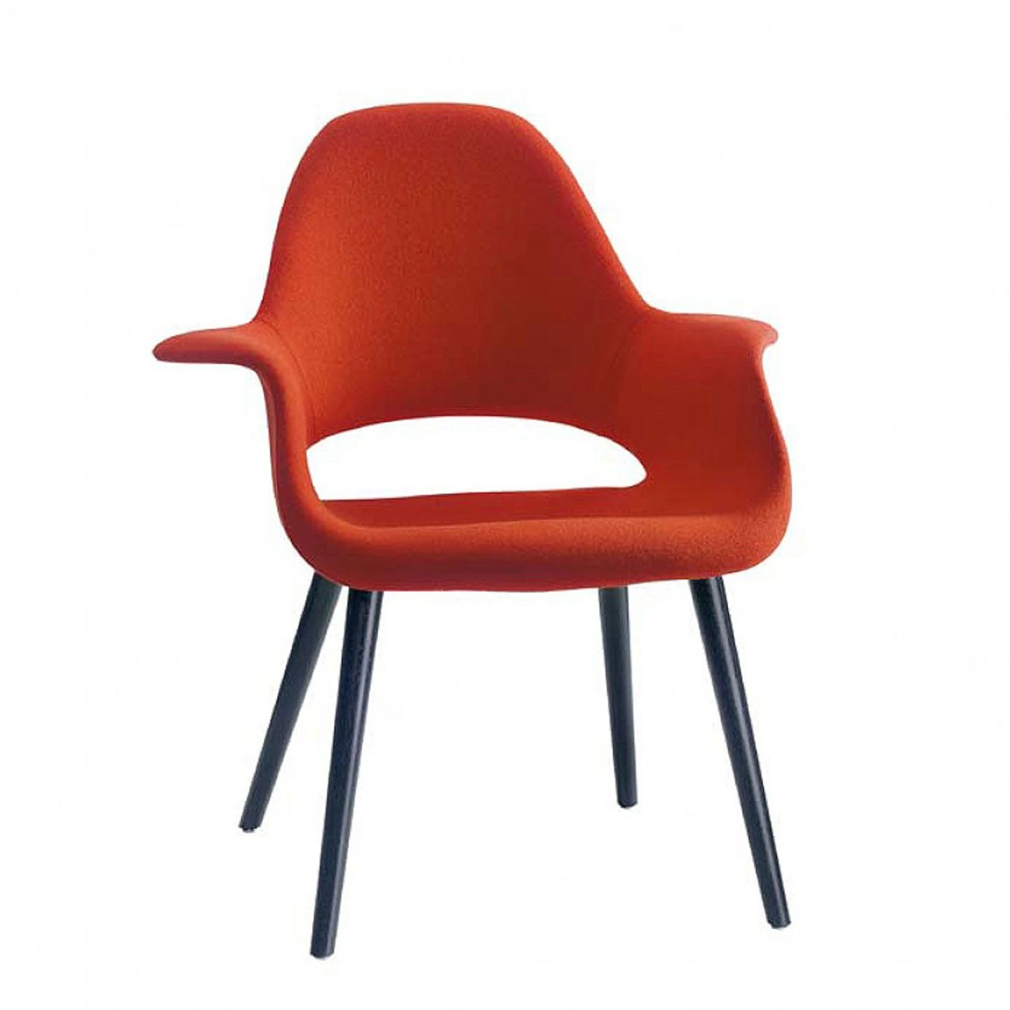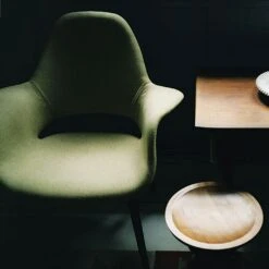 The Organic Chair, which was designed by Charles Eames and Eero Saarinen in 1940, is a comfortable small reading chair. As part of the New York MoMA’s “Organic Design in Home Furnishings” competition, its sculptural shape was ahead of its time and, owing to the lack of manufacturing techniques, never went into series production. It became possible to manufacture larger quantities of organically shaped seat shells in the 1950s and the first were chairs such as the well-known Eames Plastic Armchair and Eero Saarinen’s Tulip Chair.