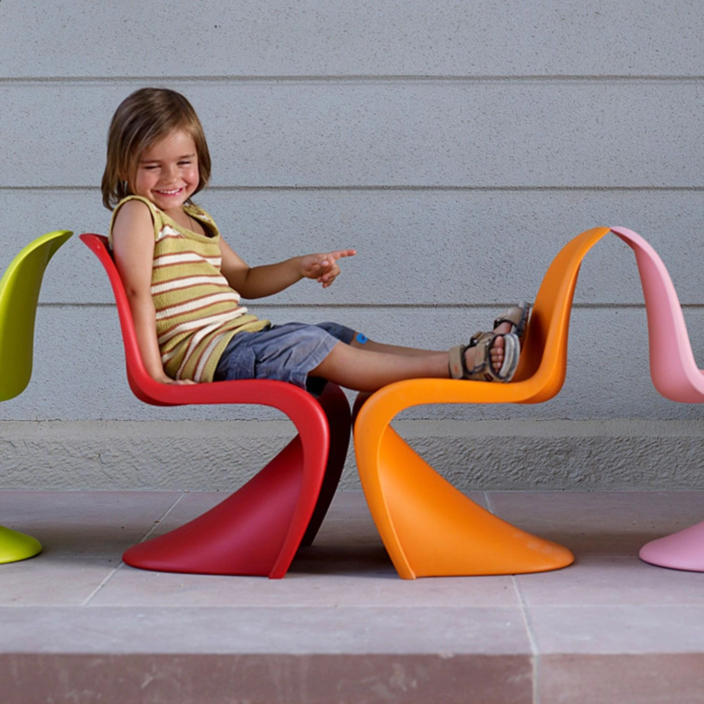 The Panton Chair has always been a children’s favourite on account of its bright, cheerful colours and smooth curves, for sitting on just as much as playing with. Early on, Verner Panton began considering the idea of producing a child’s version of the chair together with Vitra. Identical to the regular model in terms of material and shape, the Panton Junior is approximately 25 percent smaller. Available in 6 colours. Suitable for outdoor use if not left in the sun too long.